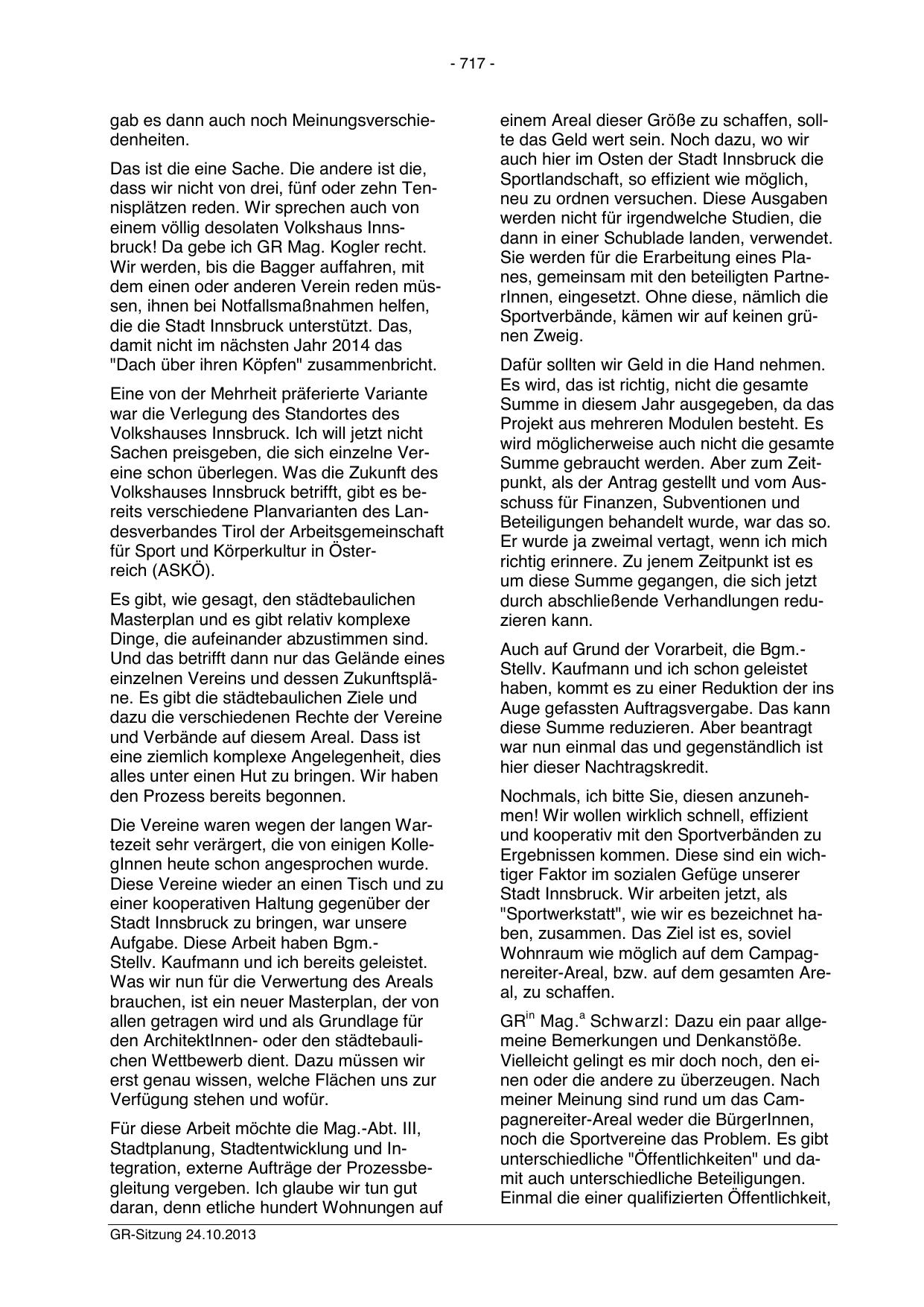 GRin Mag.a Schwarzl: Dazu ein paar allgemeine Bemerkungen und Denkanstöße.