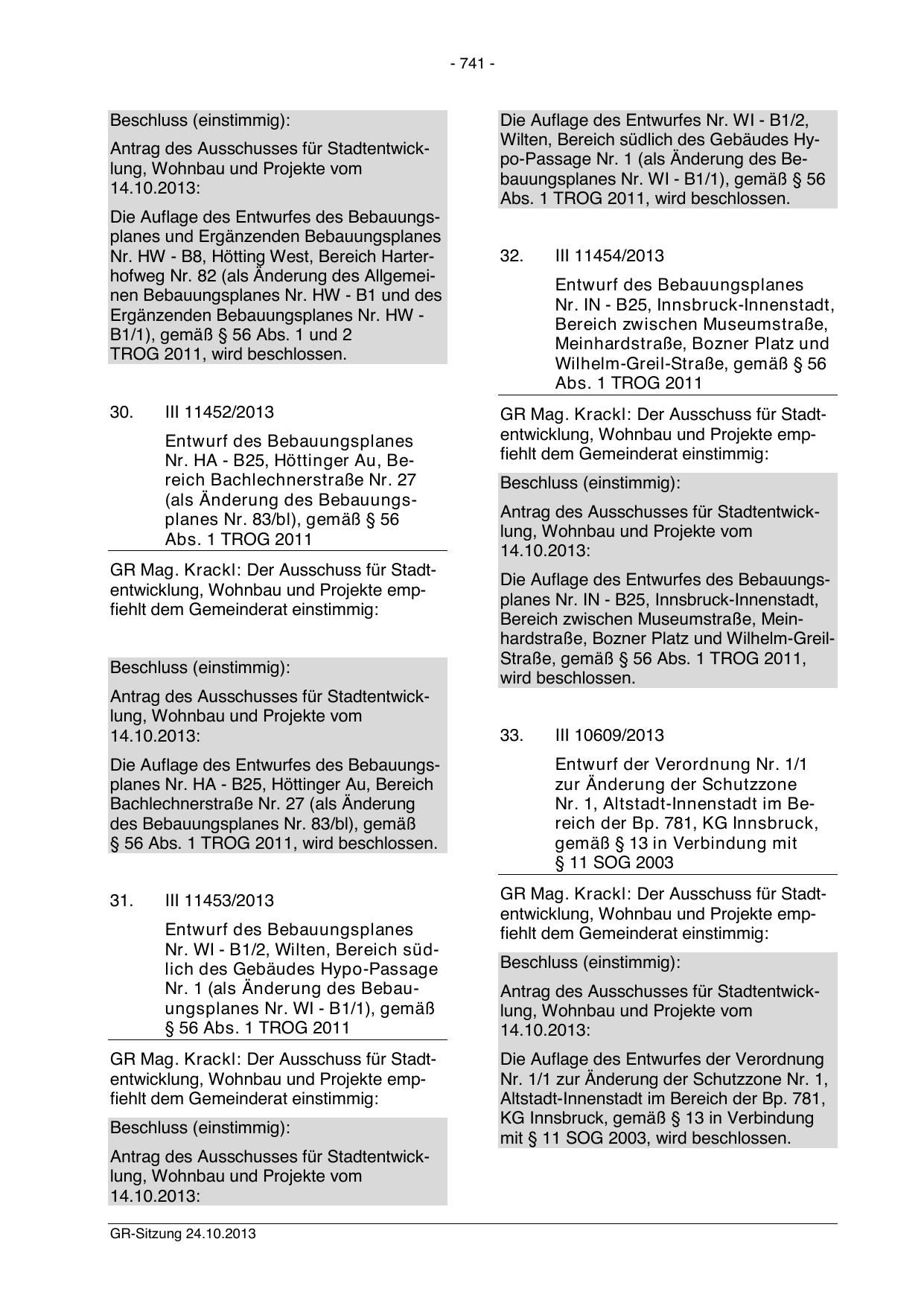 § 56 Abs. 1 TROG 2011, wird beschlossen.