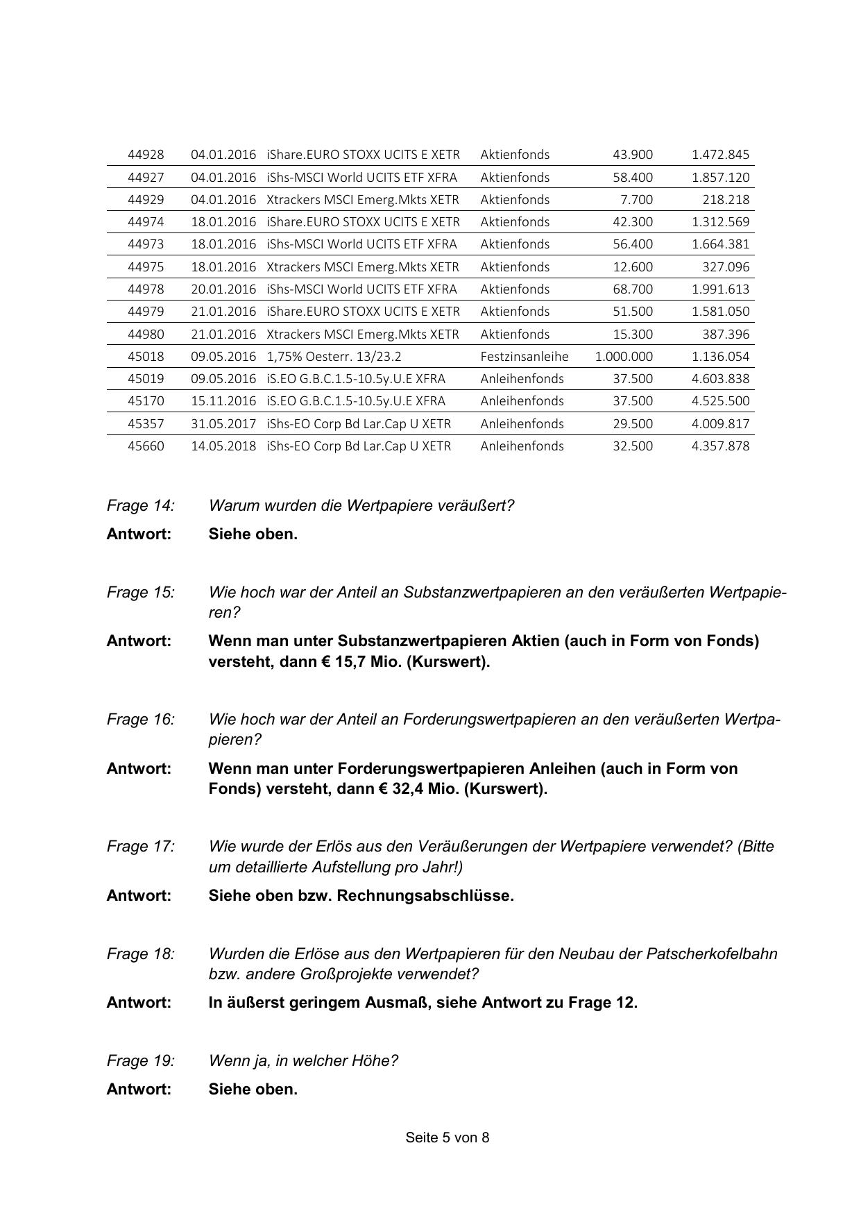 Wie wurde der Erlös aus den Veräußerungen der Wertpapiere verwendet? (Bitte