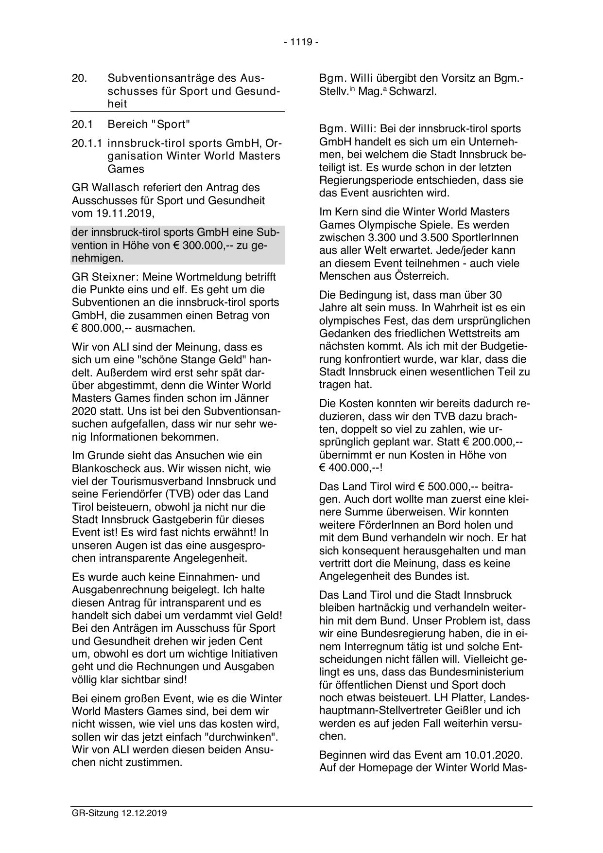 Bgm. Willi: Bei der innsbruck-tirol sports