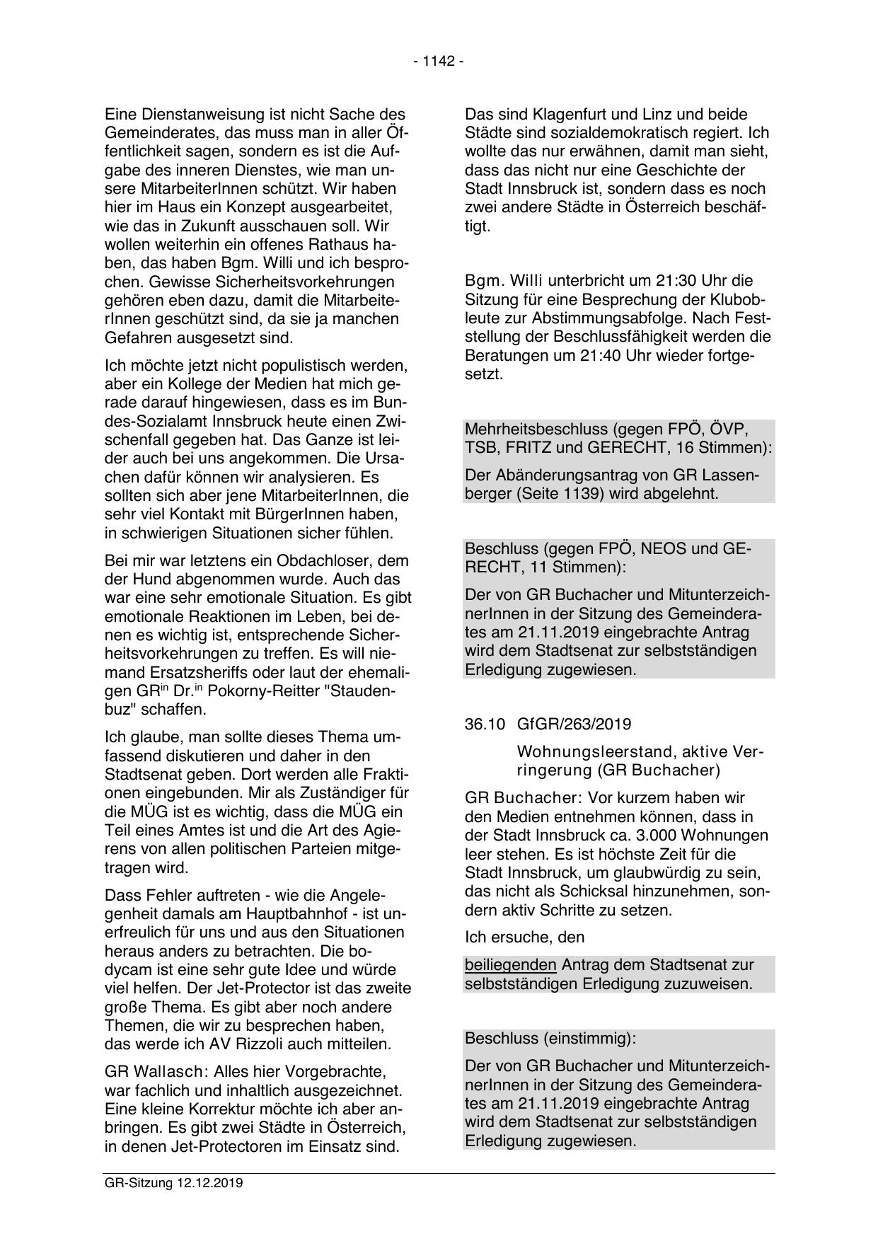 Der Abänderungsantrag von GR Lassenberger (Seite 1139) wird abgelehnt.