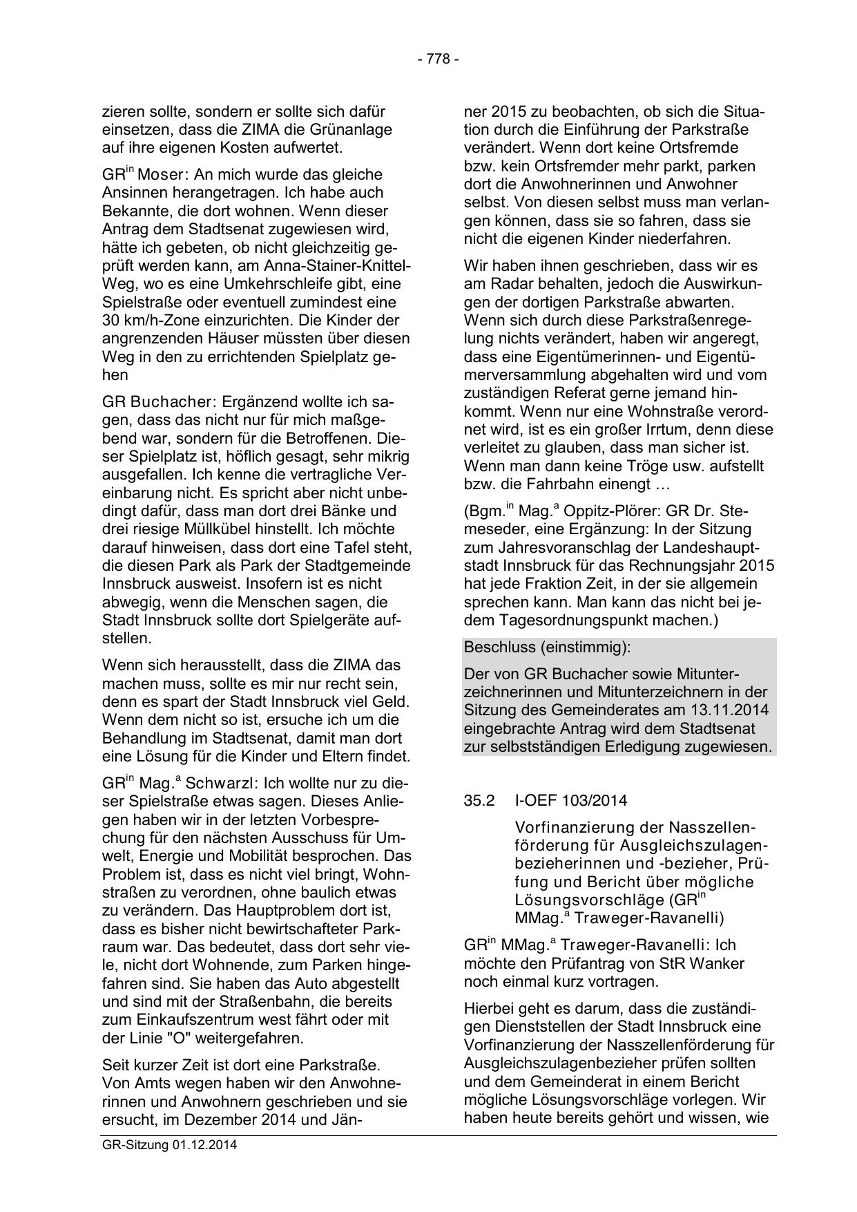 (Bgm.in Mag.a Oppitz-Plörer: GR Dr. Stemeseder, eine Ergänzung: In der Sitzung