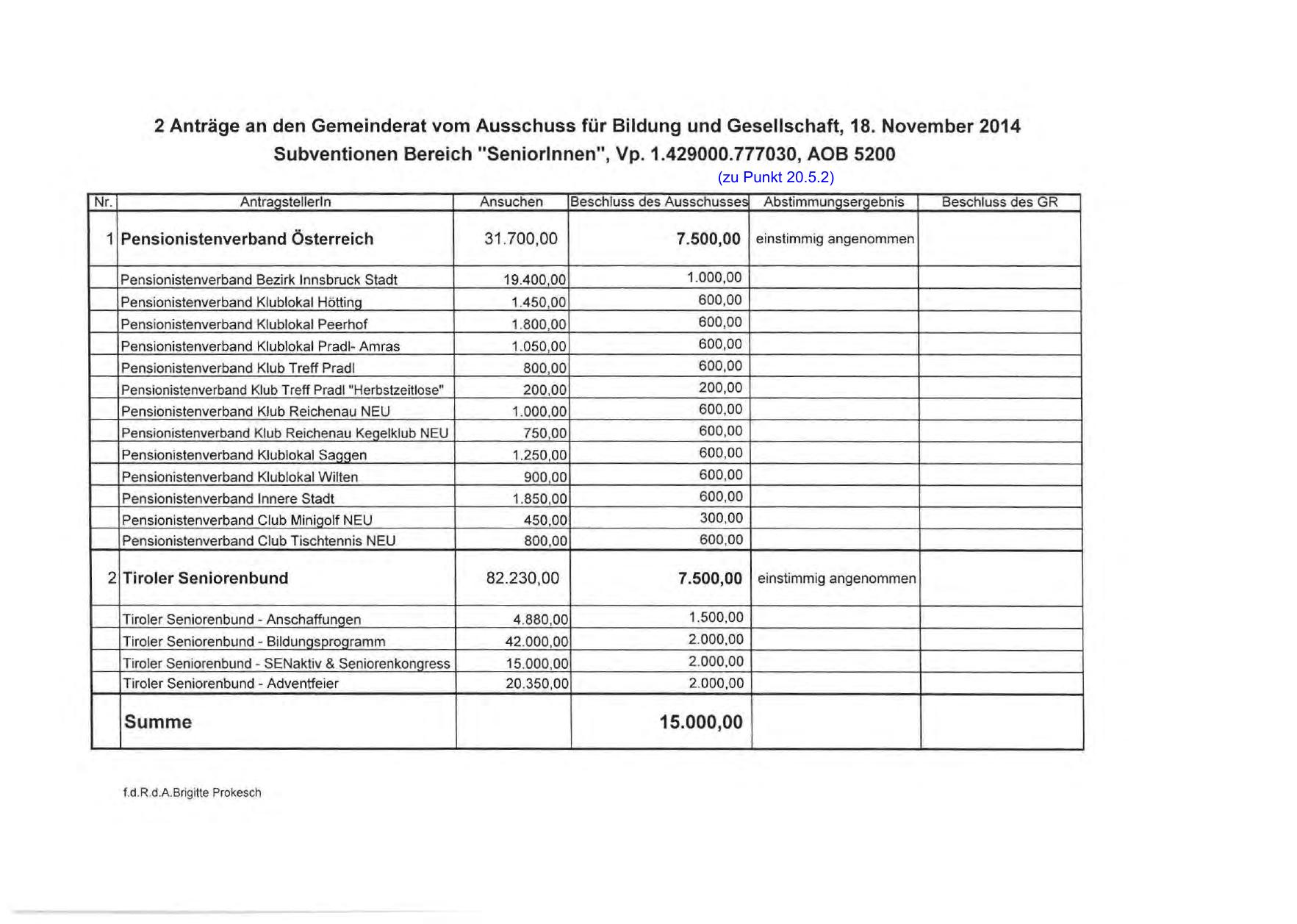 2 Anträge an den Gemeinderat vom Ausschuss für Bildung und Gesellschaft, 18. November 2014