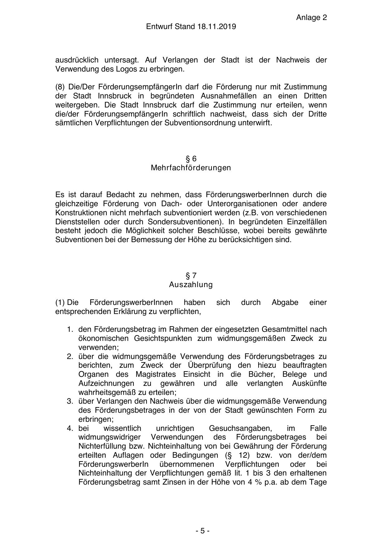 weitergeben. Die Stadt Innsbruck darf die Zustimmung nur erteilen, wenn