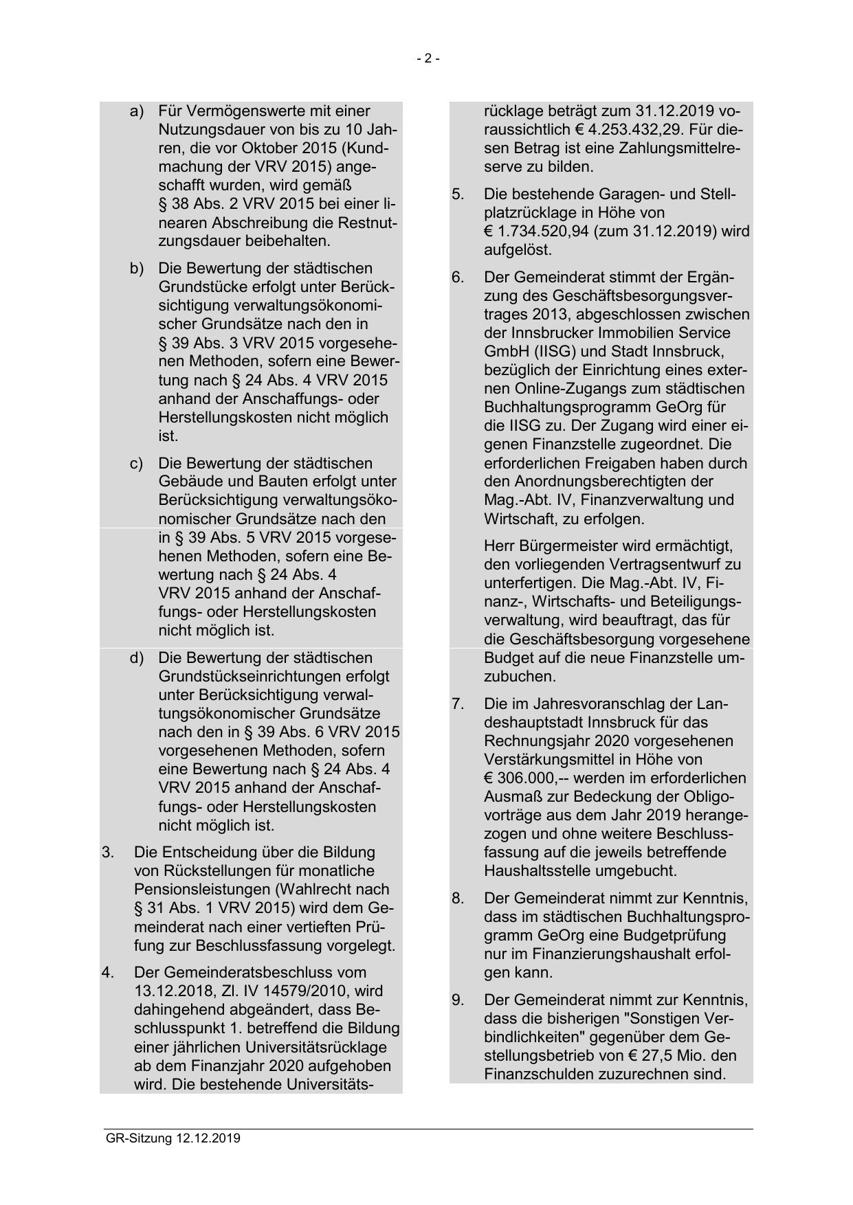 § 31 Abs. 1 VRV 2015) wird dem Gemeinderat nach einer vertieften Prüfung zur Beschlussfassung vorgelegt.