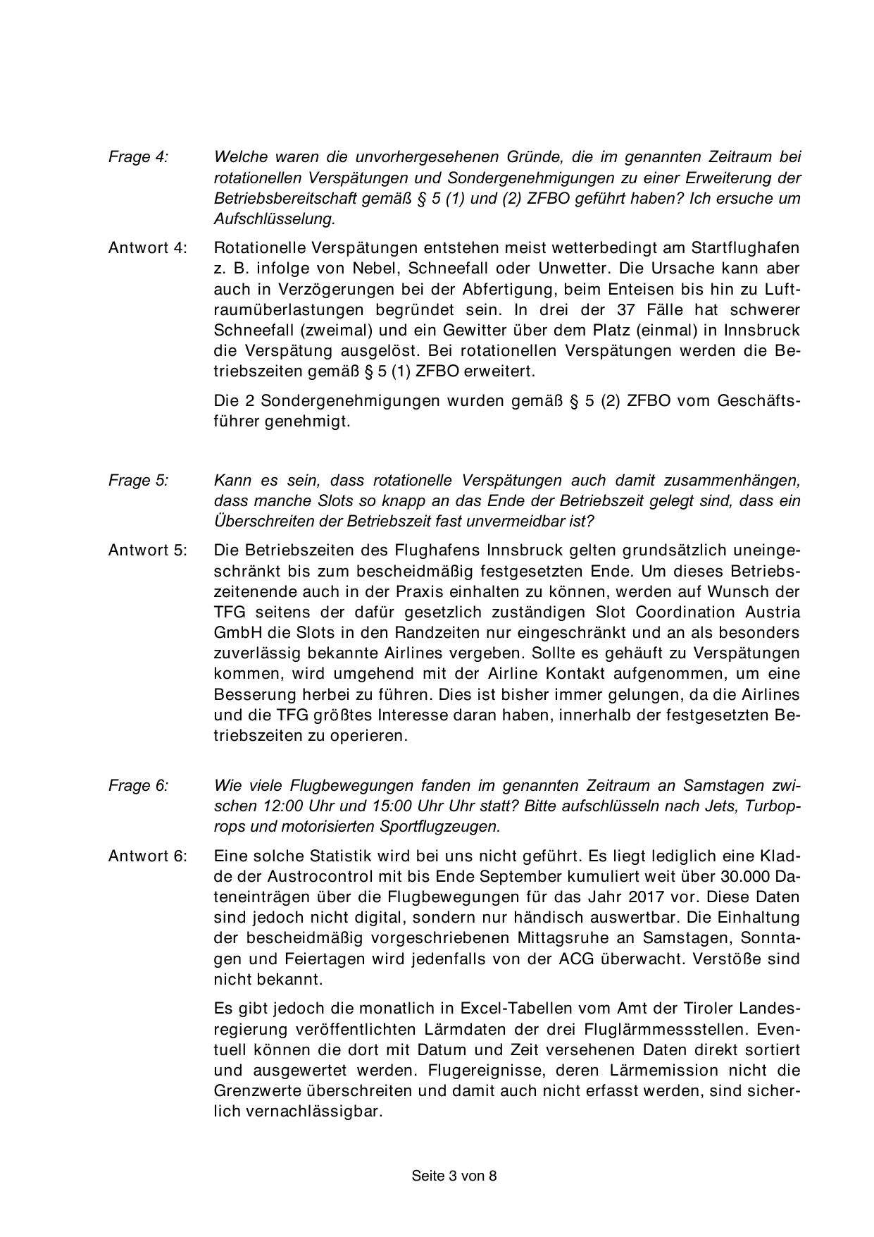 Die Betriebszeiten des Flughafens Innsbruck gelten grundsätzlich uneingeschränkt bis zum bescheidmäßig festgesetzten Ende. Um dieses Betriebszeitenende auch in der Praxis einhalten zu können, werden auf Wunsch der