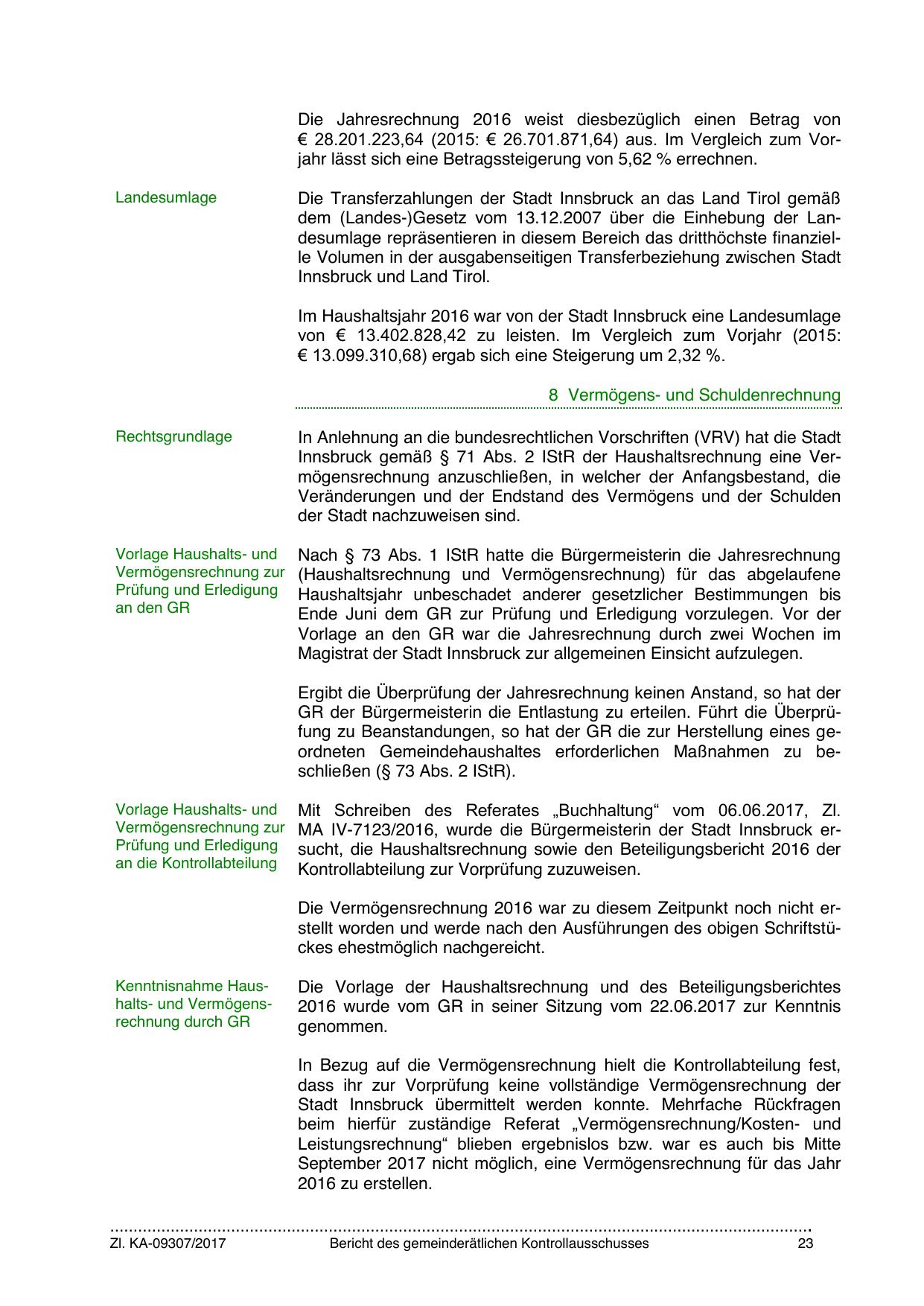 Innsbruck gemäß § 71 Abs. 2 IStR der Haushaltsrechnung eine Vermögensrechnung anzuschließen, in welcher der Anfangsbestand, die