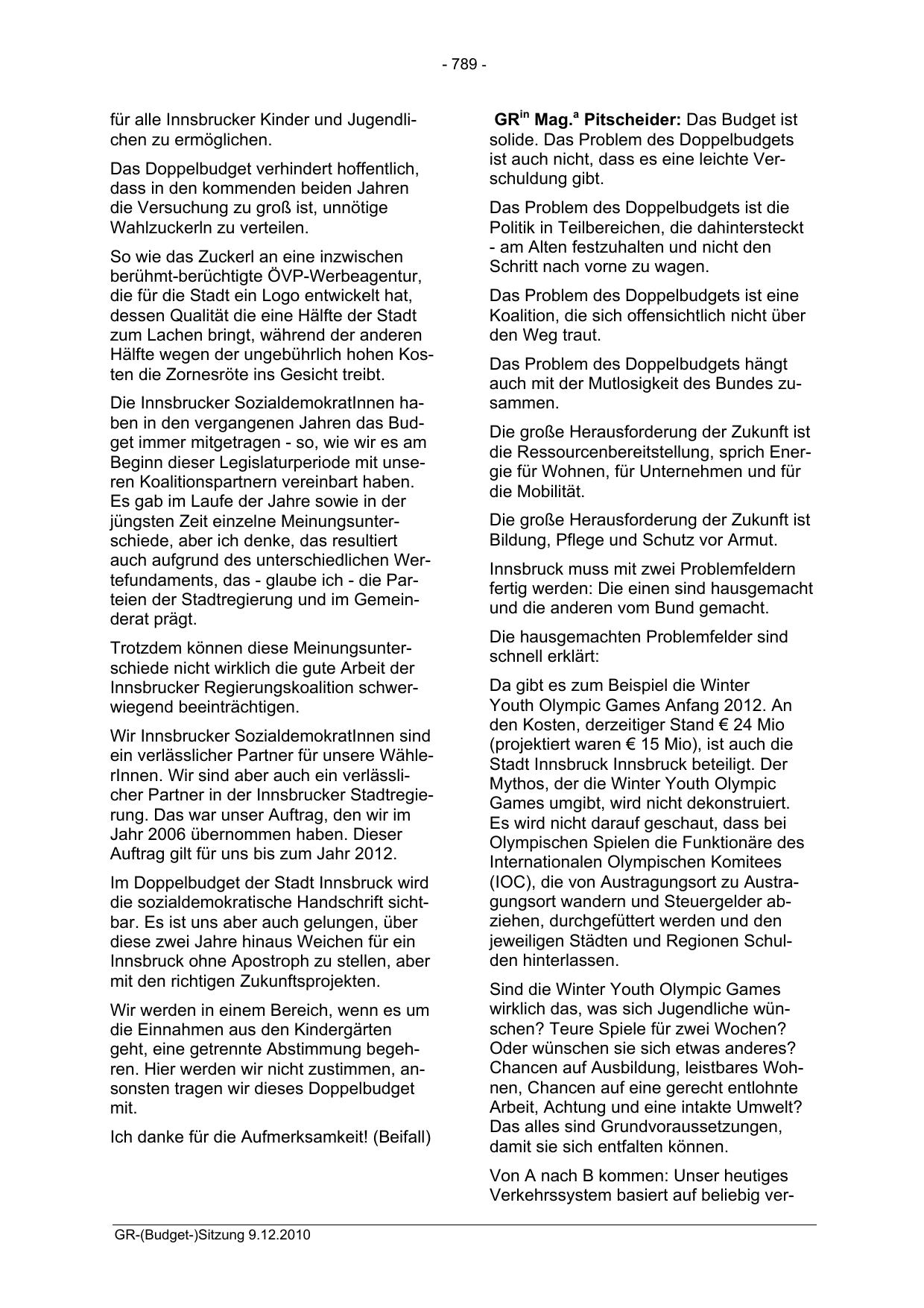 GR-(Budget-)Sitzung 9.12.2010