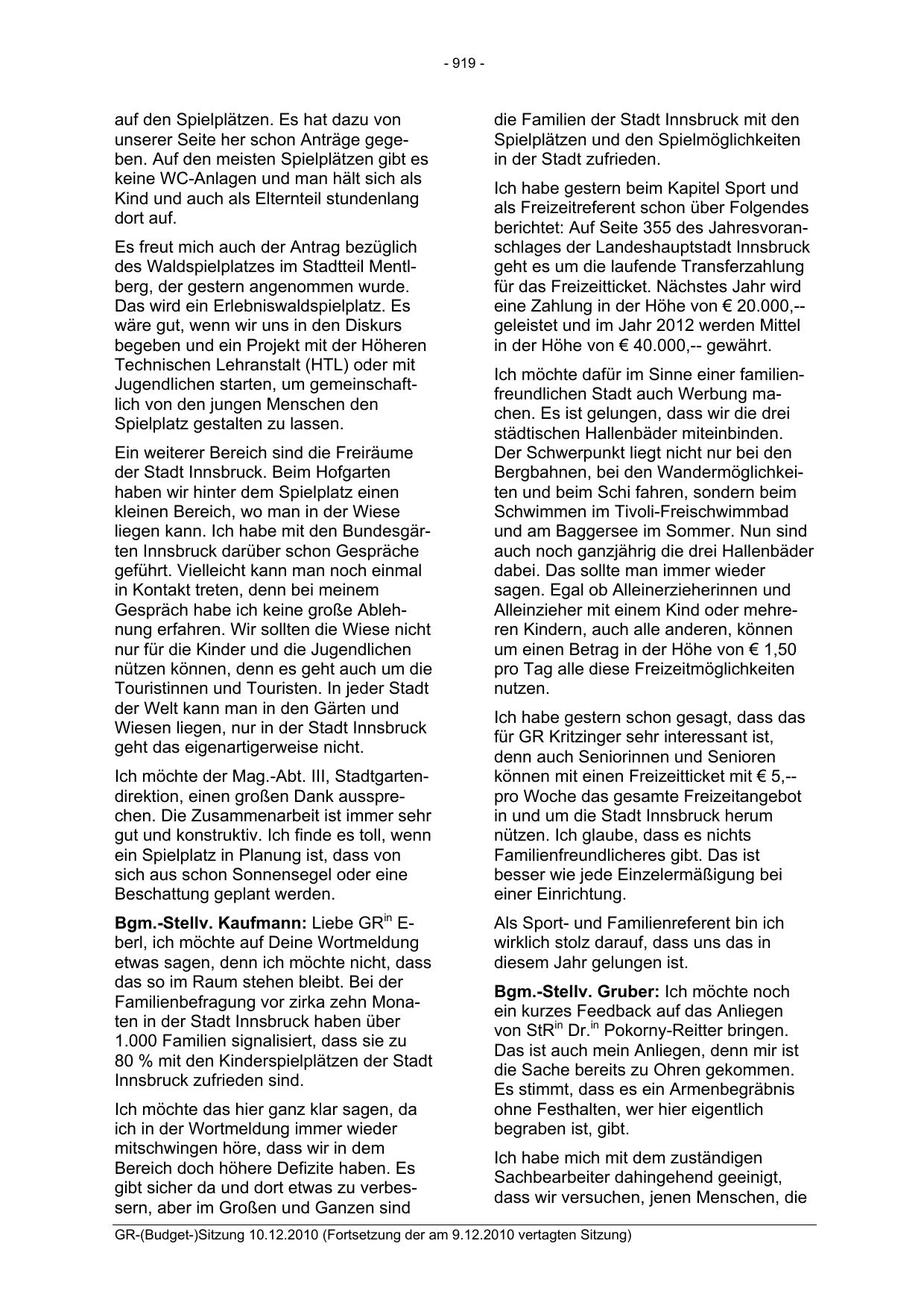 berichtet: Auf Seite 355 des Jahresvoranschlages der Landeshauptstadt Innsbruck