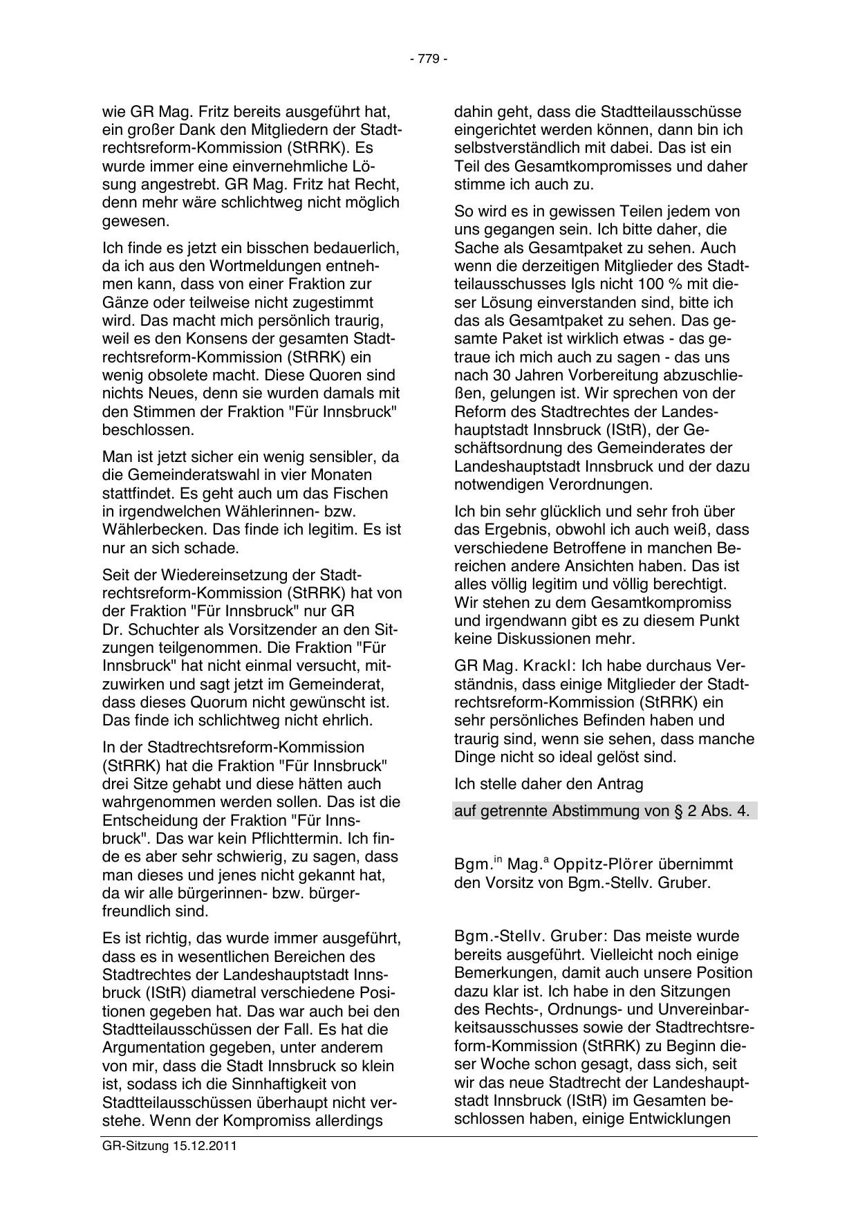 Stadtrechtes der Landeshauptstadt Innsbruck (IStR) diametral verschiedene Positionen gegeben hat. Das war auch bei den