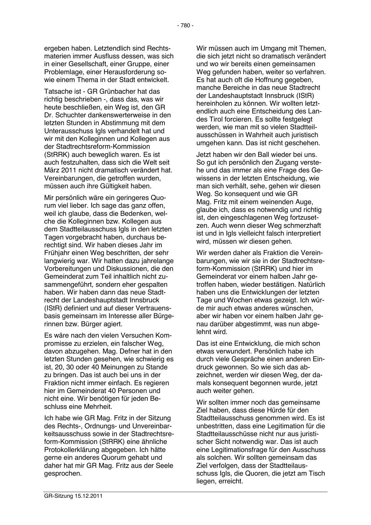 haben. Wir haben dann das neue Stadtrecht der Landeshauptstadt Innsbruck