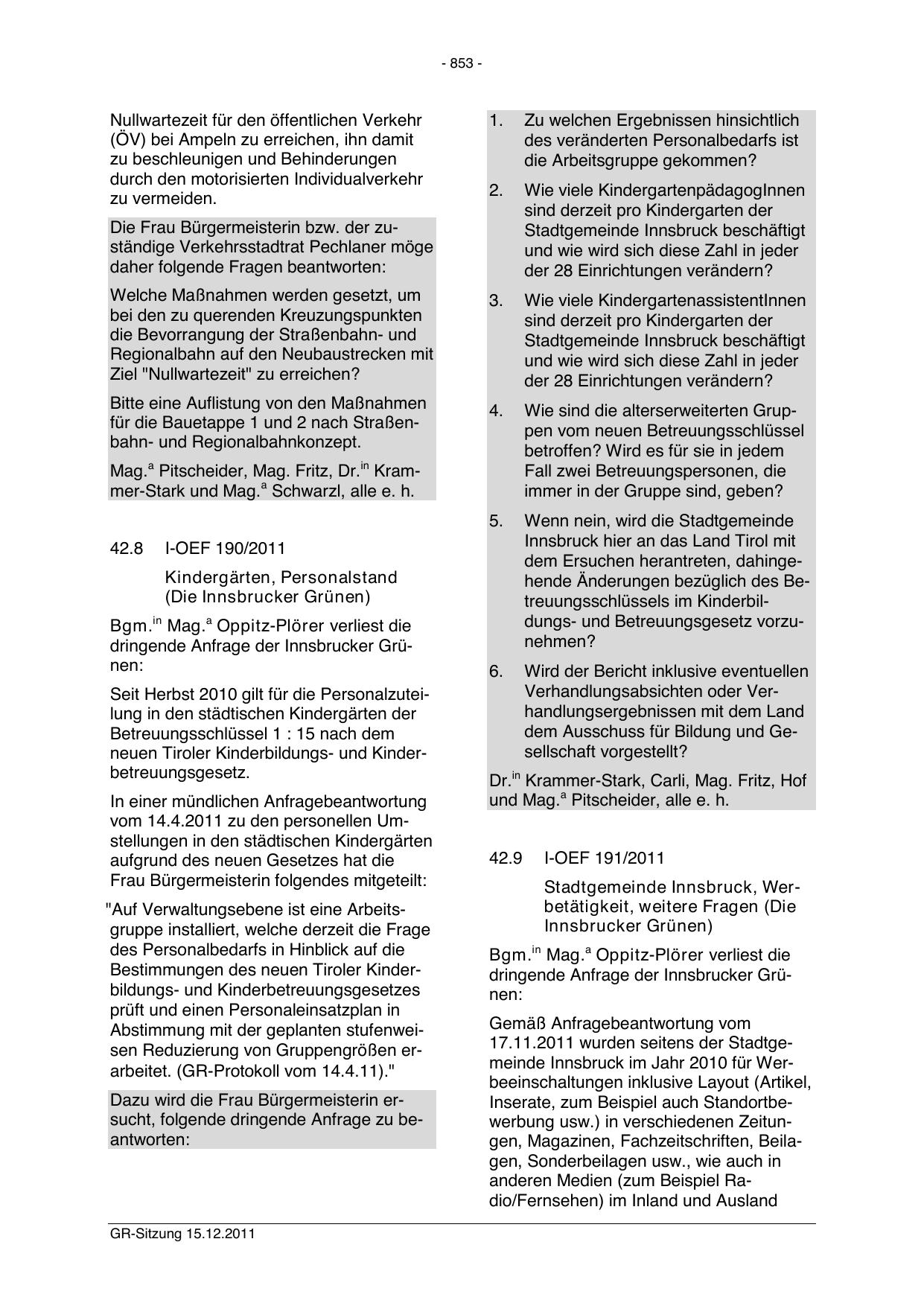17.11.2011 wurden seitens der Stadtgemeinde Innsbruck im Jahr 2010 für Werbeeinschaltungen inklusive Layout (Artikel,
