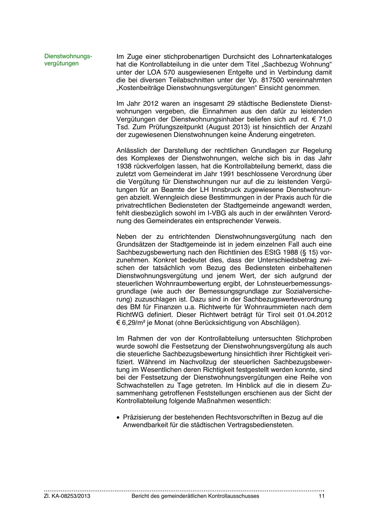 die Vergütung für Dienstwohnungen nur auf die zu leistenden Vergütungen für an Beamte der LH Innsbruck zugewiesene Dienstwohnungen abzielt. Wenngleich diese Bestimmungen in der Praxis auch für die