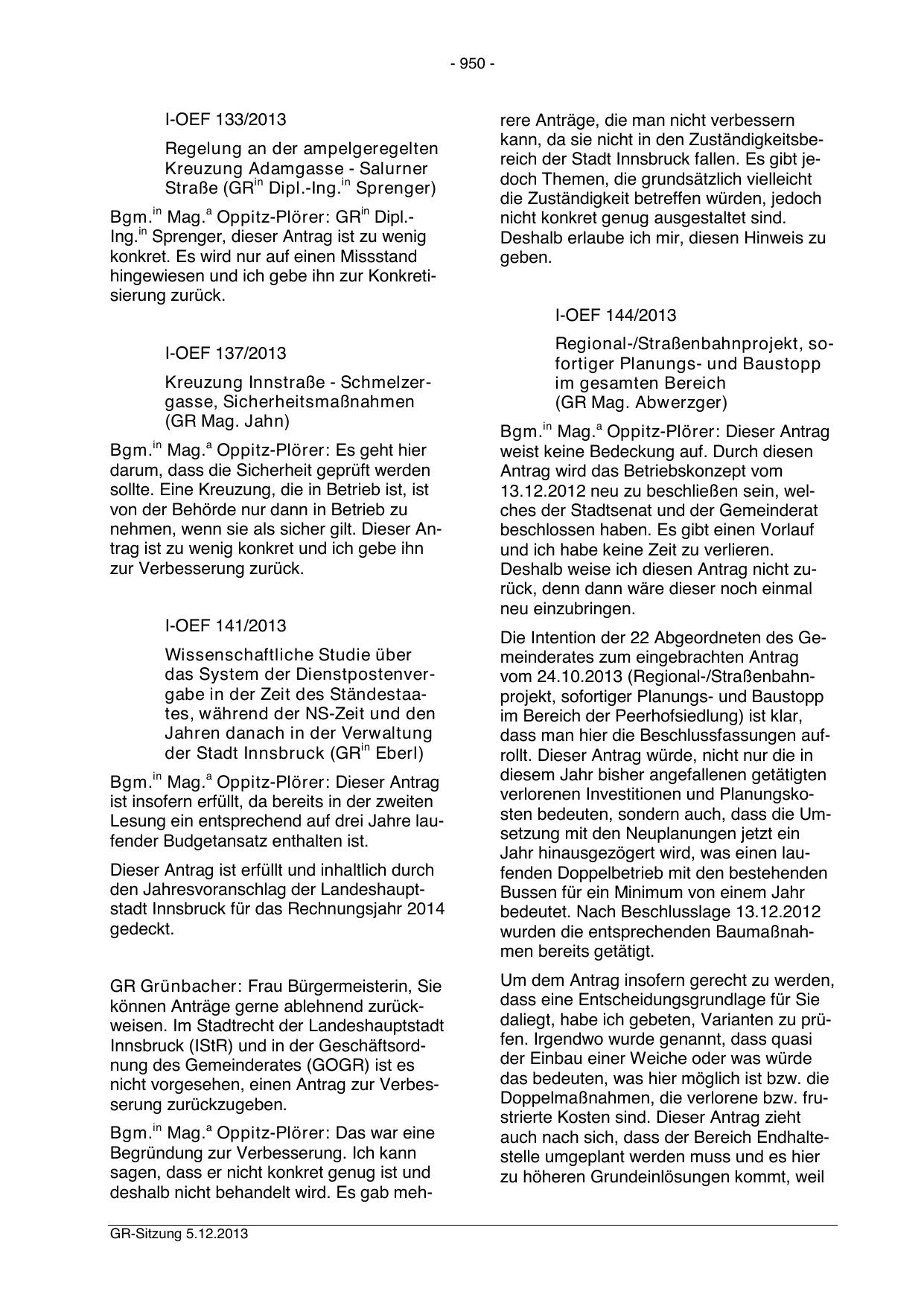 deshalb nicht behandelt wird. Es gab mehGR-Sitzung 5.12.2013