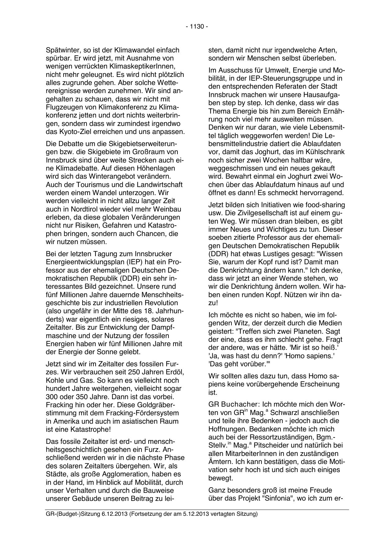GR-(Budget-)Sitzung 6.12.2013 (Fortsetzung der am 5.12.2013 vertagten Sitzung)