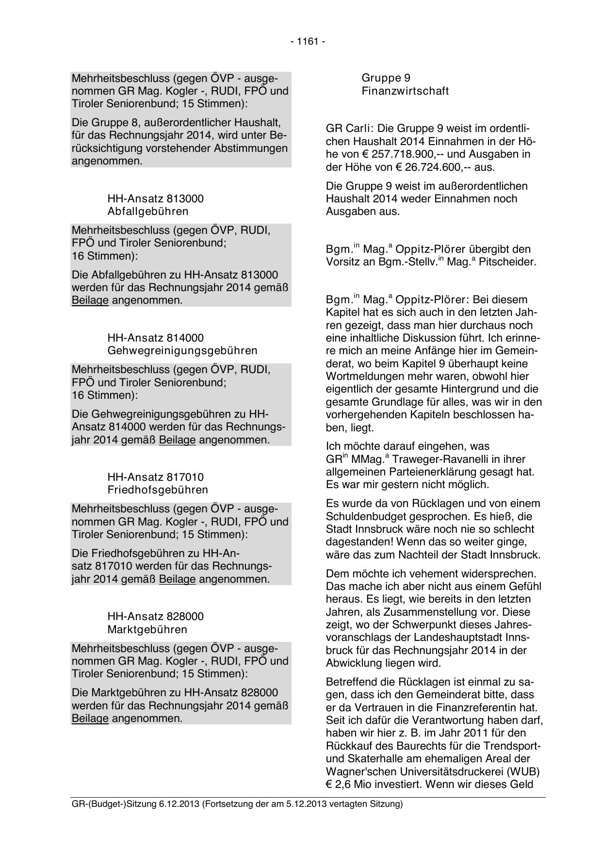 GR-(Budget-)Sitzung 6.12.2013 (Fortsetzung der am 5.12.2013 vertagten Sitzung)