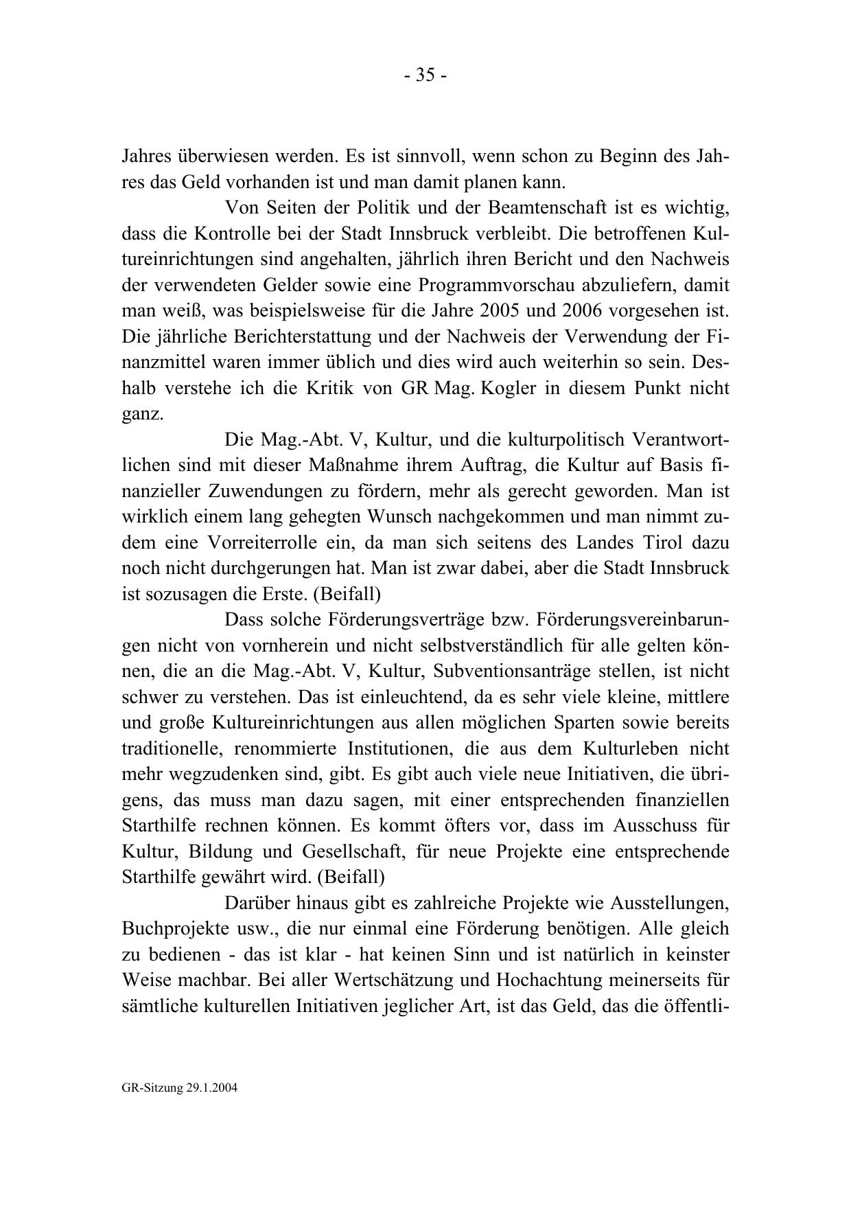 Die jährliche Berichterstattung und der Nachweis der Verwendung der Finanzmittel waren immer üblich und dies wird auch weiterhin so sein. Deshalb verstehe ich die Kritik von GR Mag. Kogler in diesem Punkt nicht