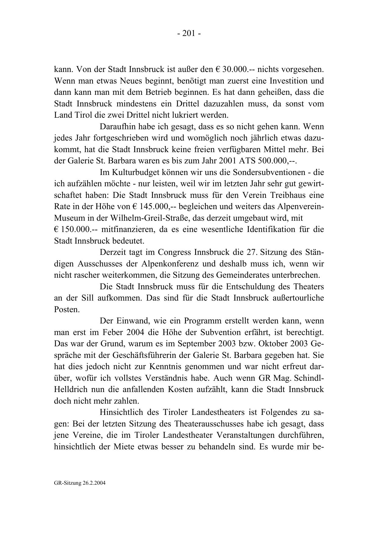 kann. Von der Stadt Innsbruck ist außer den € 30.000.-- nichts vorgesehen.