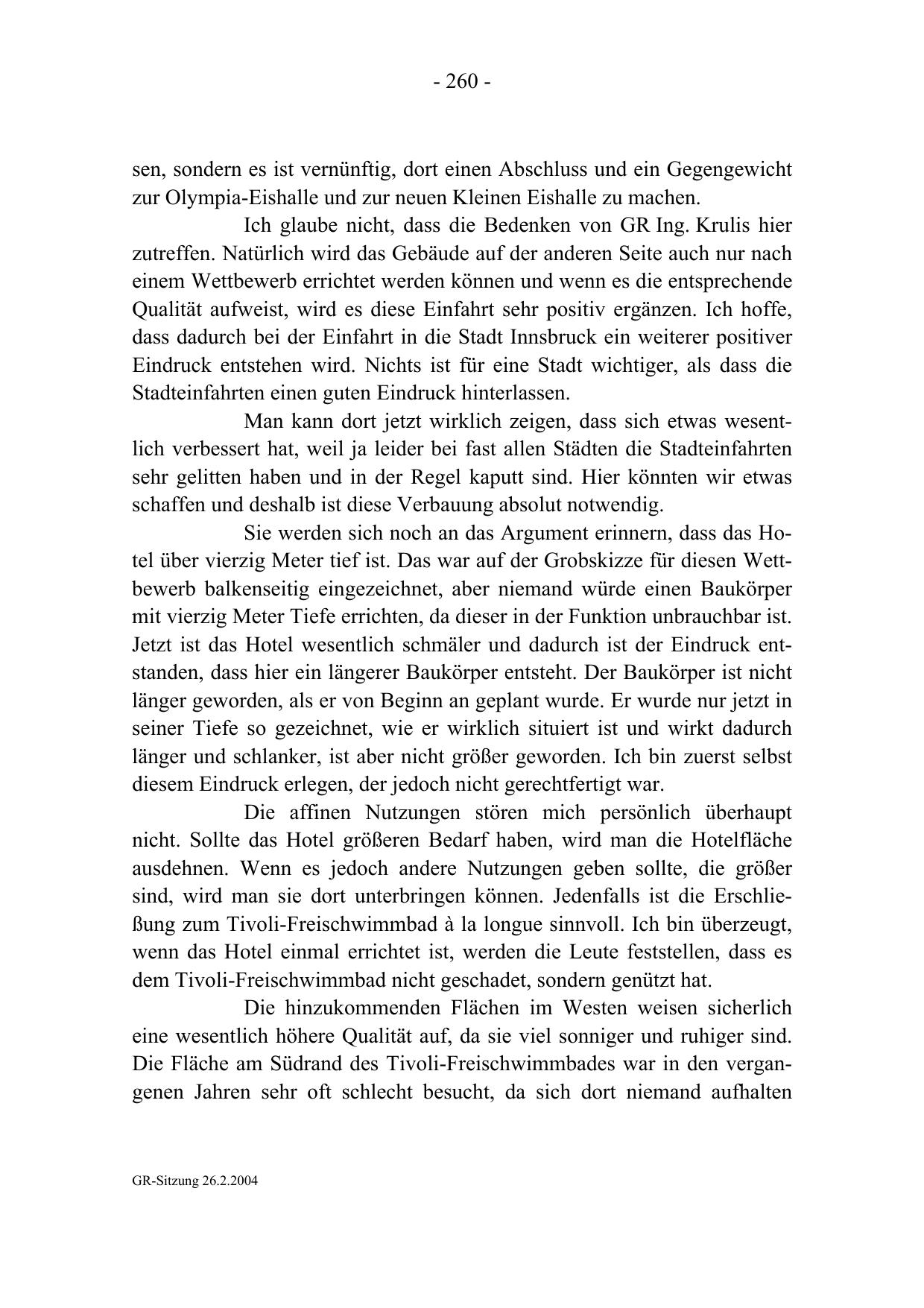 Ich glaube nicht, dass die Bedenken von GR Ing. Krulis hier