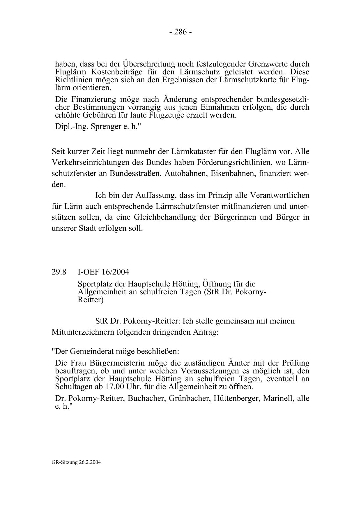 Allgemeinheit an schulfreien Tagen (StR Dr. PokornyReitter)