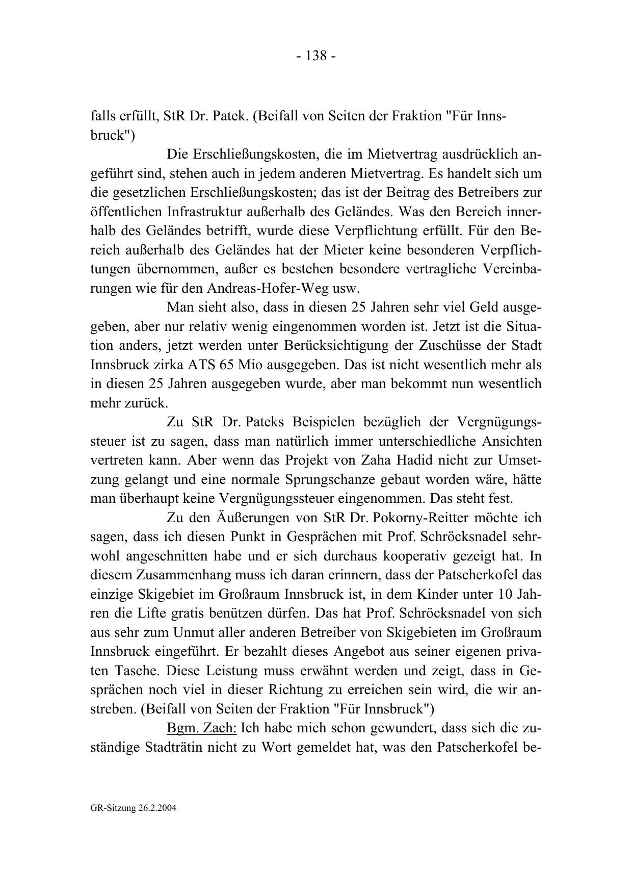 falls erfüllt, StR Dr. Patek. (Beifall von Seiten der Fraktion "Für Innsbruck")