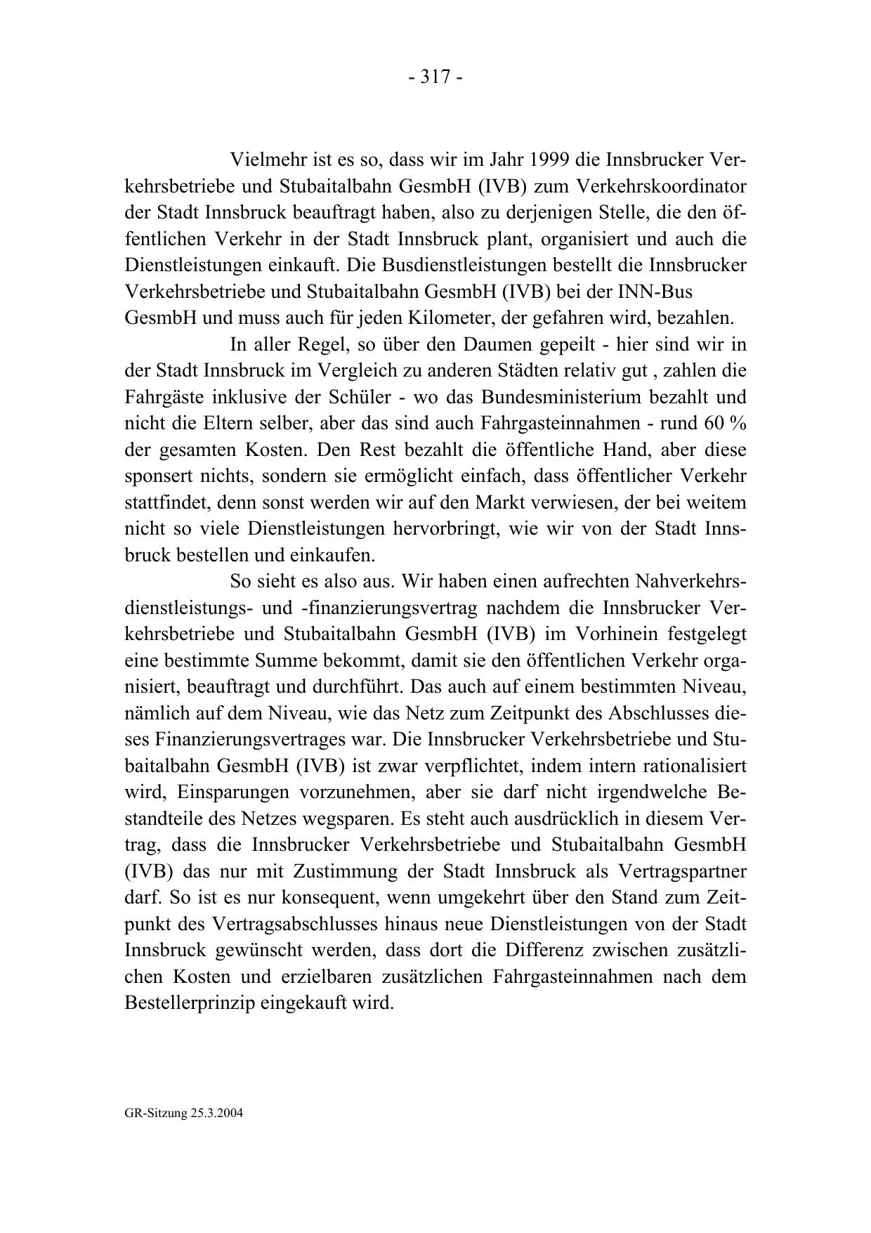 der Stadt Innsbruck beauftragt haben, also zu derjenigen Stelle, die den öffentlichen Verkehr in der Stadt Innsbruck plant, organisiert und auch die