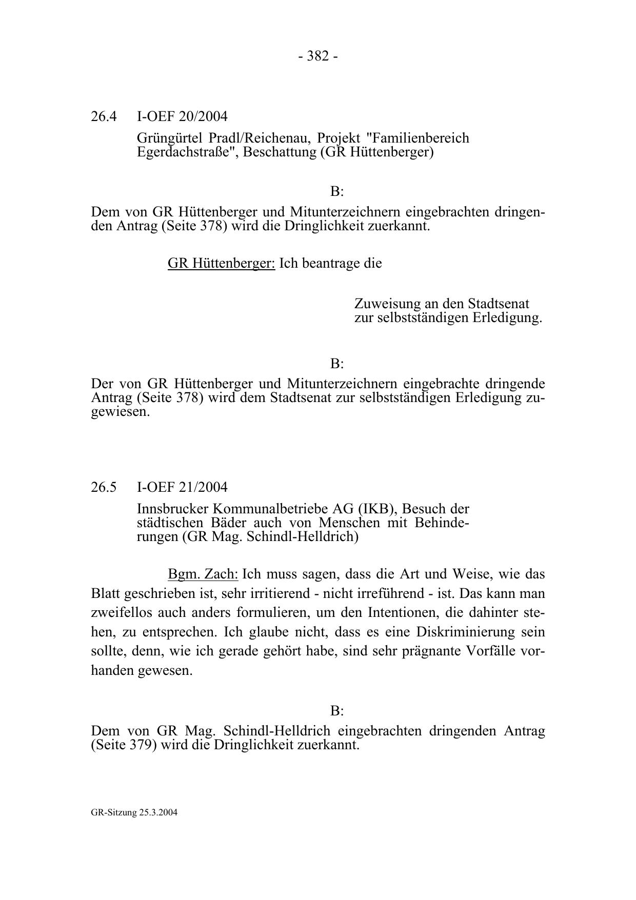 Bgm. Zach: Ich muss sagen, dass die Art und Weise, wie das