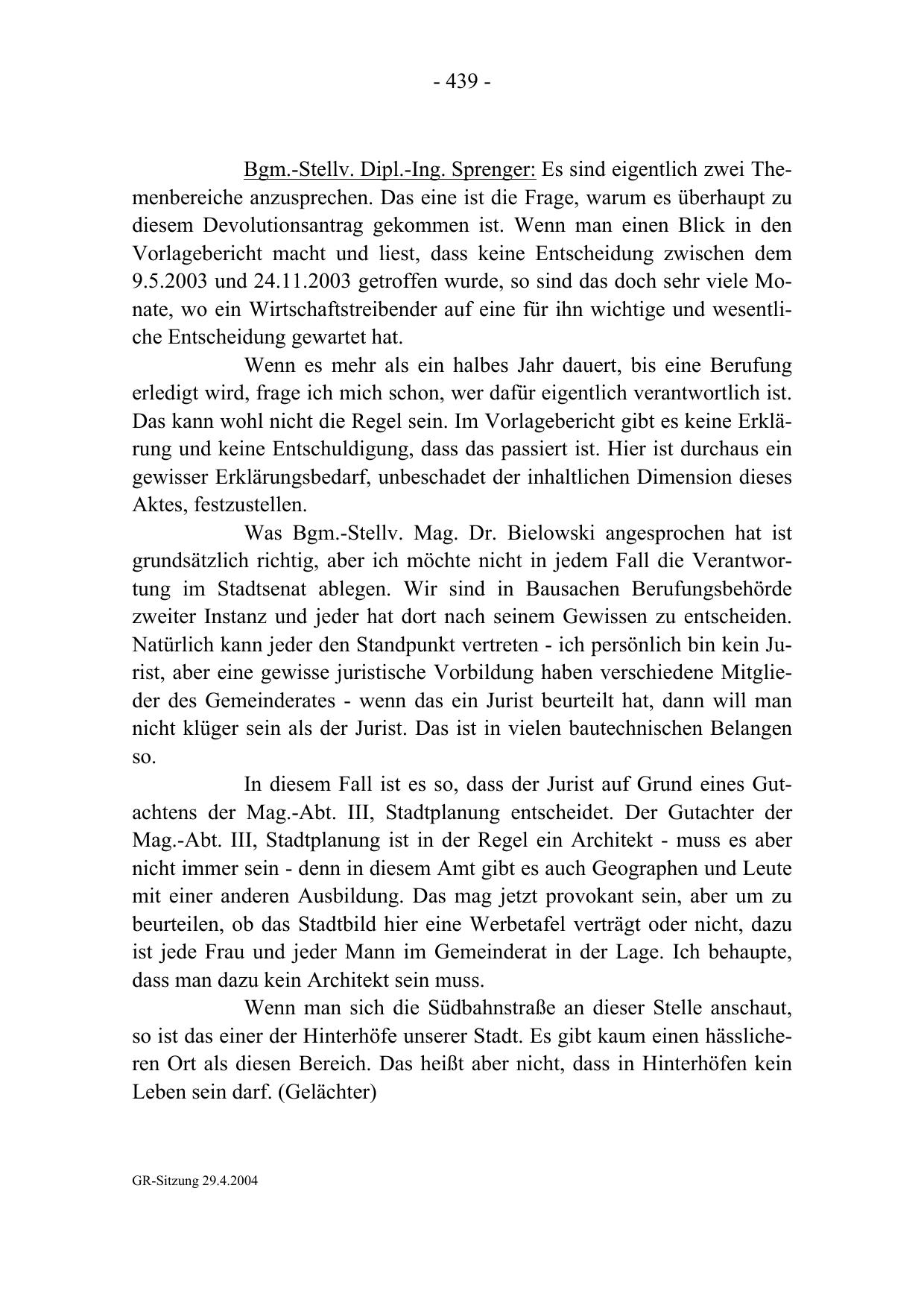 Bgm.-Stellv. Dipl.-Ing. Sprenger: Es sind eigentlich zwei Themenbereiche anzusprechen. Das eine ist die Frage, warum es überhaupt zu