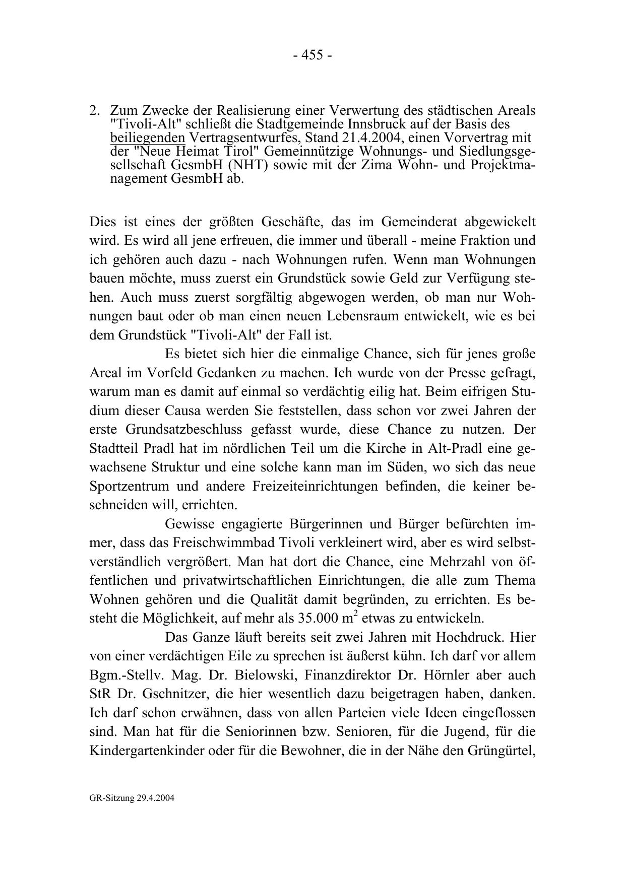 StR Dr. Gschnitzer, die hier wesentlich dazu beigetragen haben, danken.