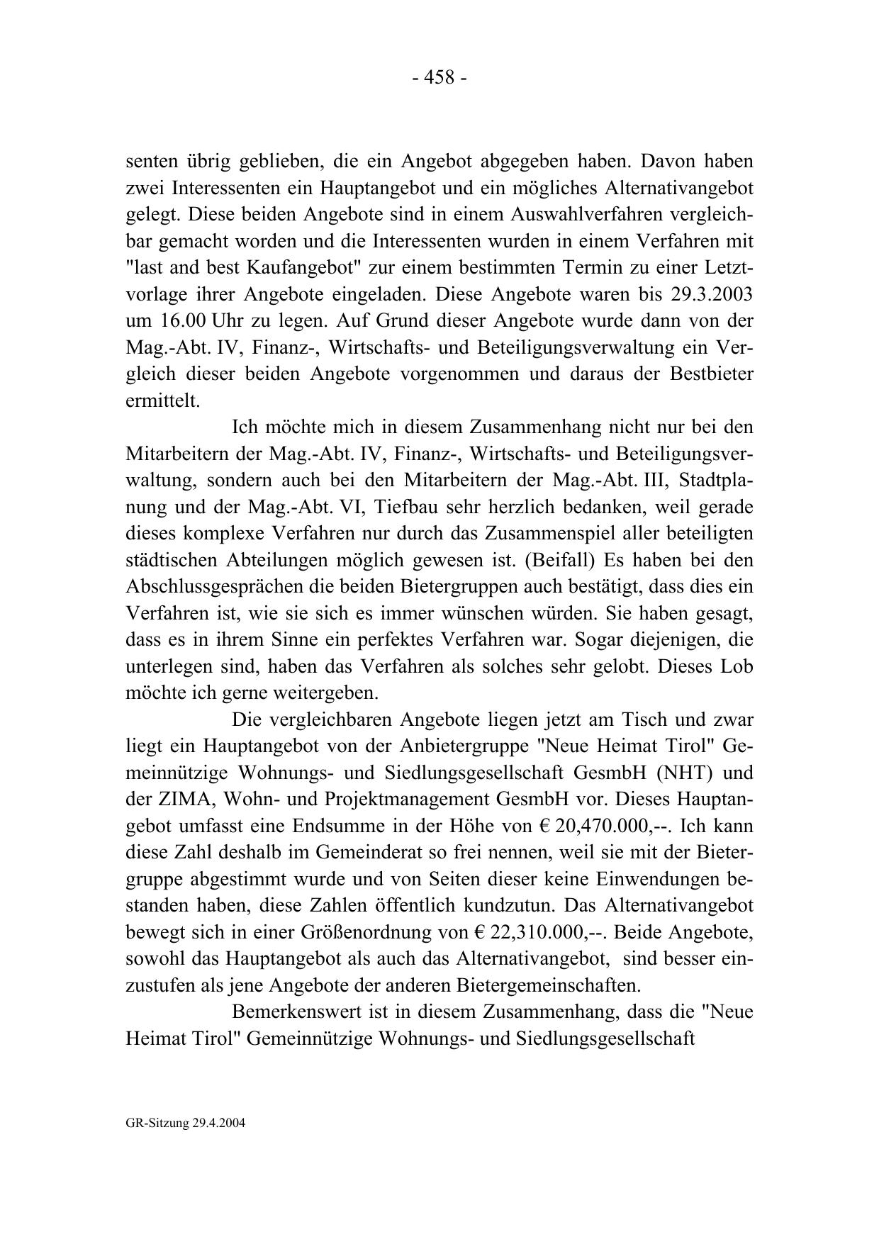 diese Zahl deshalb im Gemeinderat so frei nennen, weil sie mit der Bietergruppe abgestimmt wurde und von Seiten dieser keine Einwendungen bestanden haben, diese Zahlen öffentlich kundzutun. Das Alternativangebot