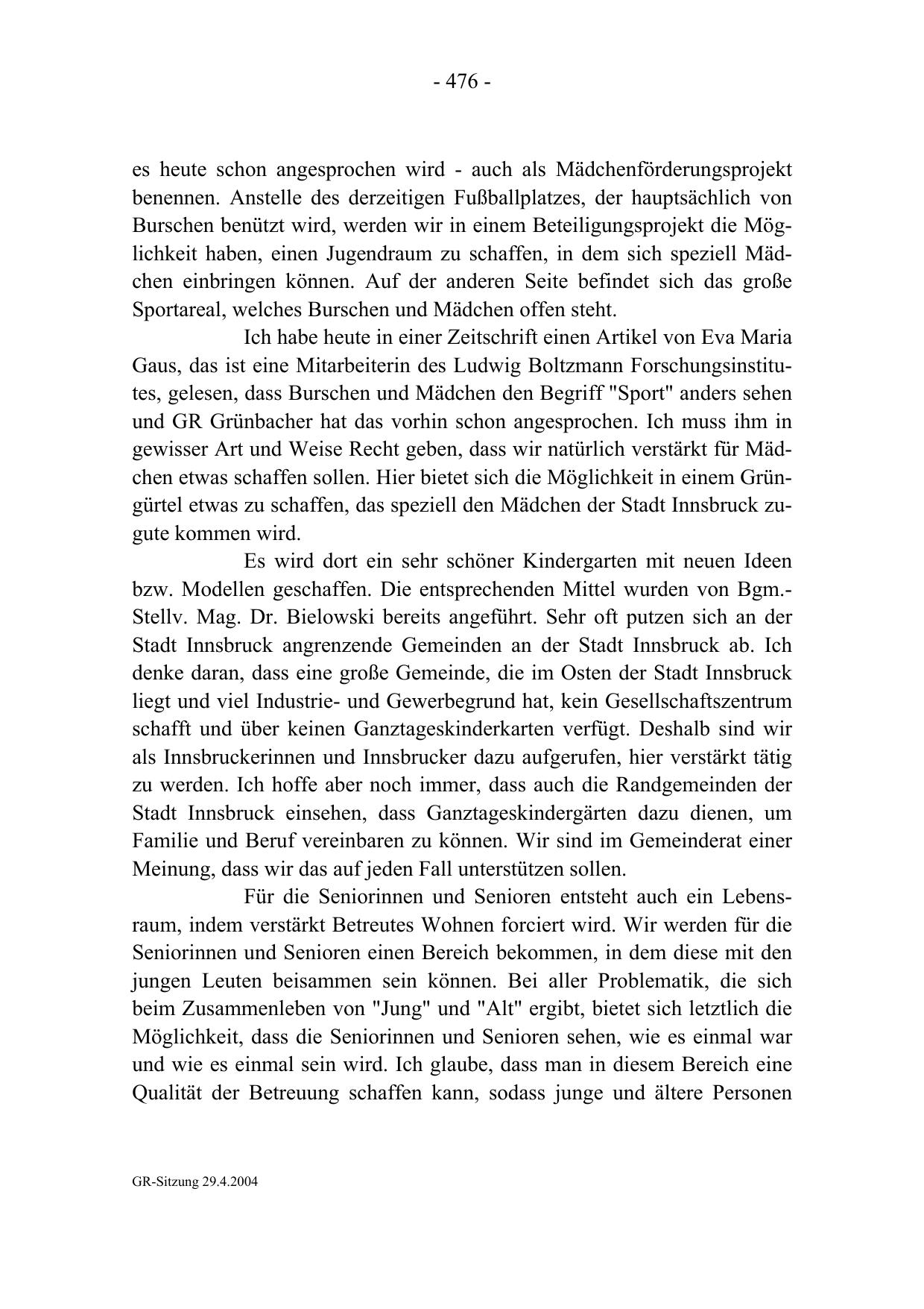 gewisser Art und Weise Recht geben, dass wir natürlich verstärkt für Mädchen etwas schaffen sollen. Hier bietet sich die Möglichkeit in einem Grüngürtel etwas zu schaffen, das speziell den Mädchen der Stadt Innsbruck zugute kommen wird.