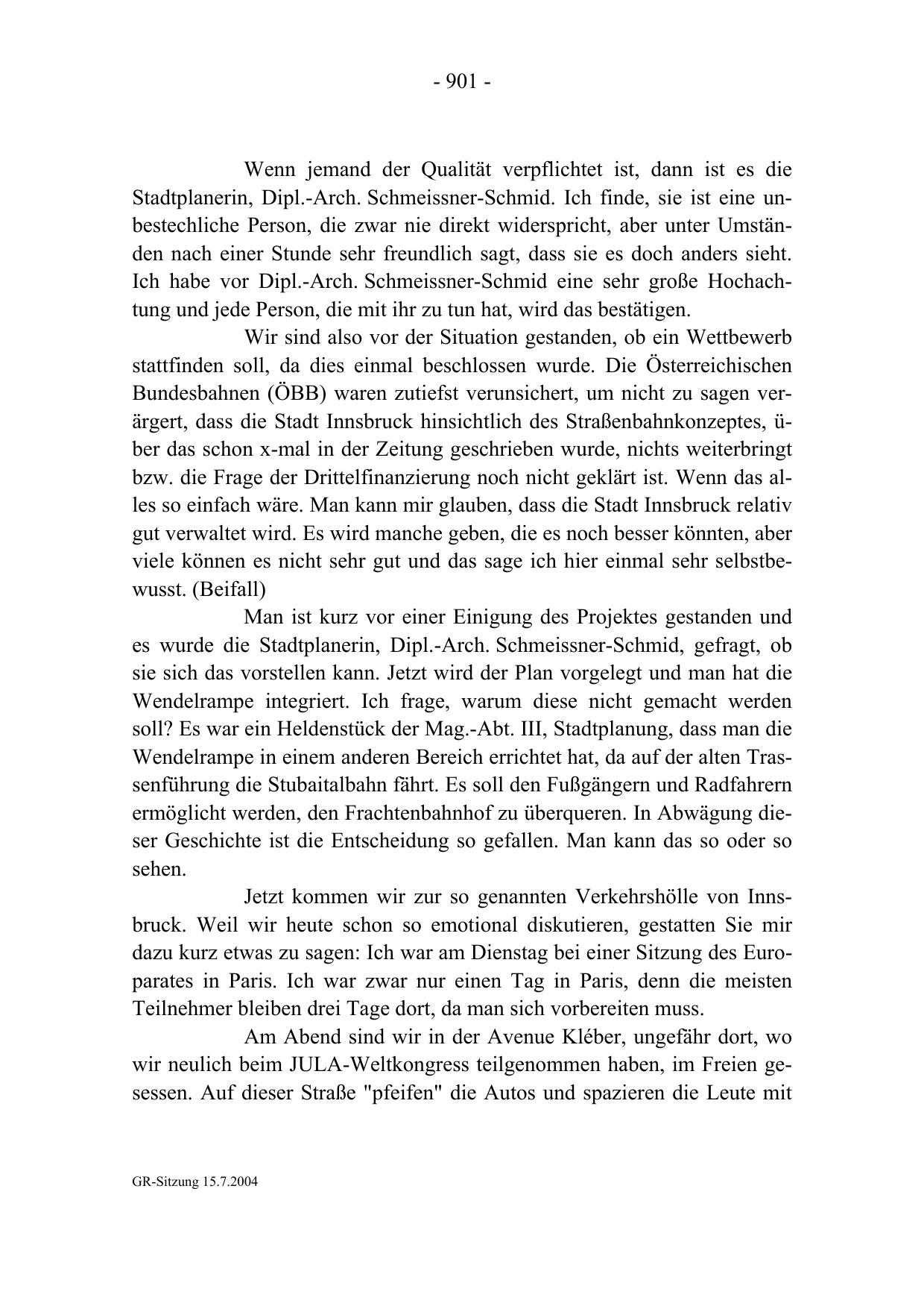 bzw. die Frage der Drittelfinanzierung noch nicht geklärt ist. Wenn das alles so einfach wäre. Man kann mir glauben, dass die Stadt Innsbruck relativ