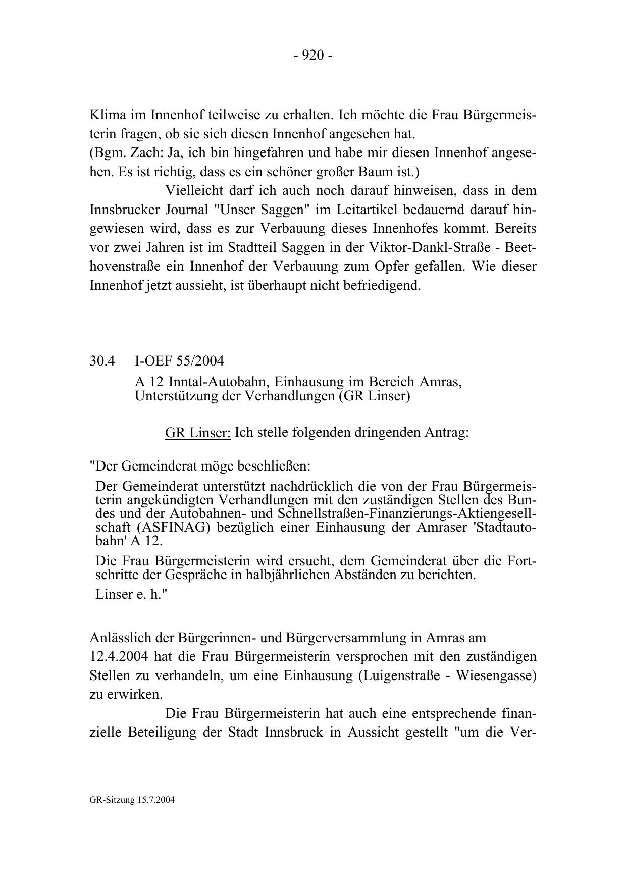 GR-Sitzung 15.7.2004