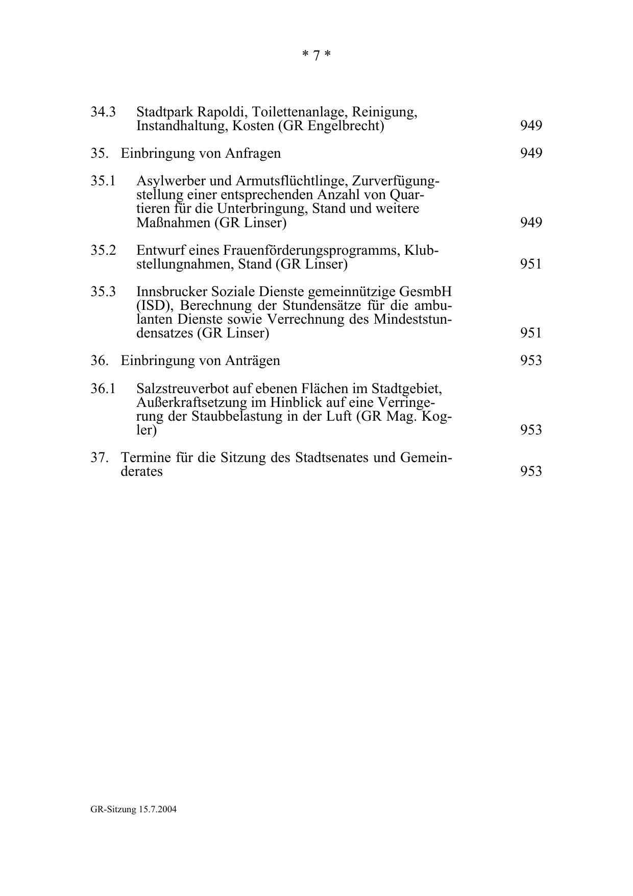 37. Termine für die Sitzung des Stadtsenates und Gemeinderates