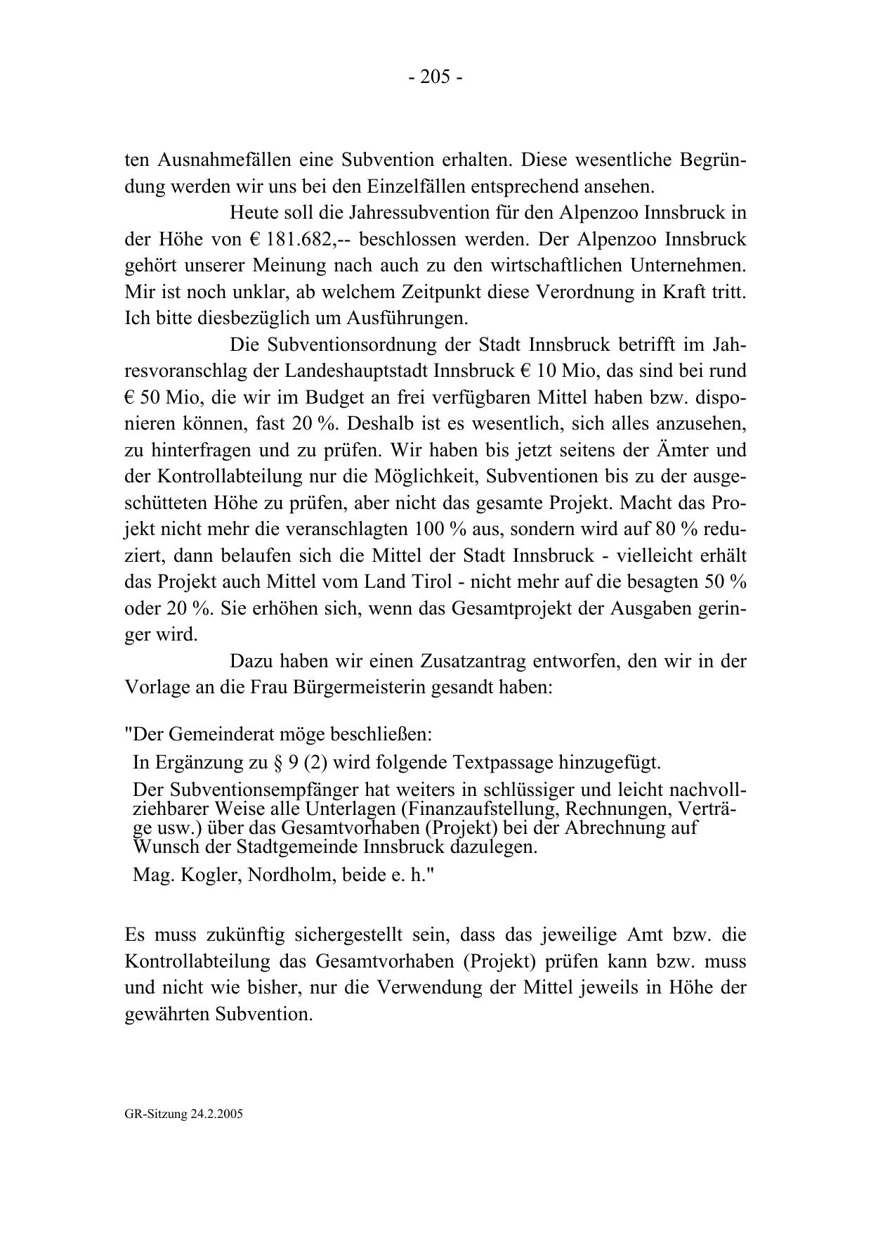 Die Subventionsordnung der Stadt Innsbruck betrifft im Jahresvoranschlag der Landeshauptstadt Innsbruck € 10 Mio, das sind bei rund