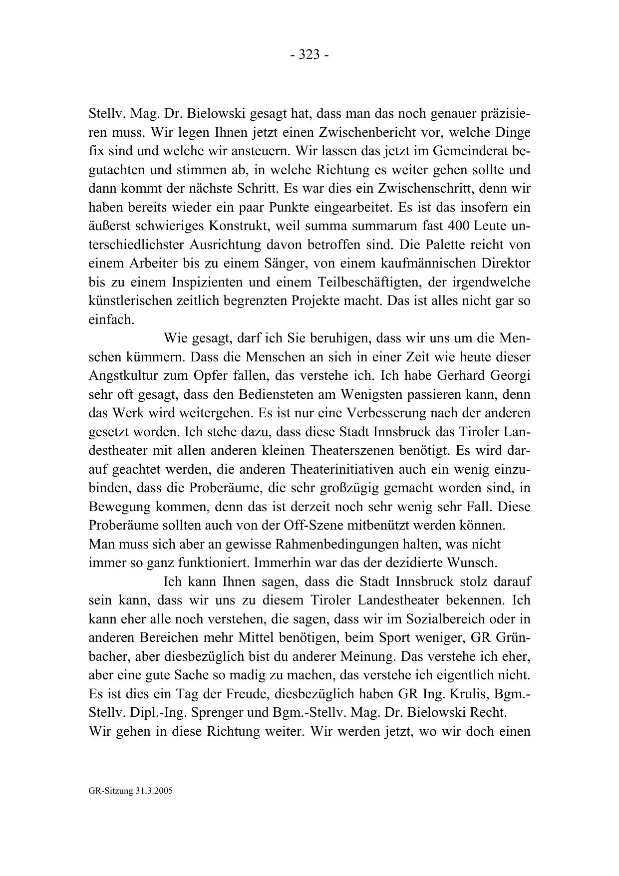 gesetzt worden. Ich stehe dazu, dass diese Stadt Innsbruck das Tiroler Landestheater mit allen anderen kleinen Theaterszenen benötigt. Es wird darauf geachtet werden, die anderen Theaterinitiativen auch ein wenig einzubinden, dass die Proberäume, die sehr großzügig gemacht worden sind, in
