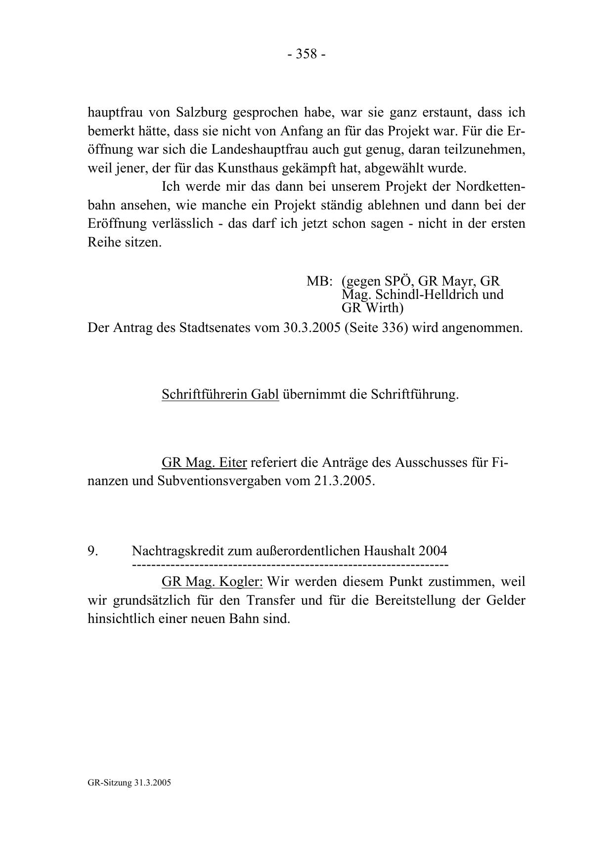 Der Antrag des Stadtsenates vom 30.3.2005 (Seite 336) wird angenommen.