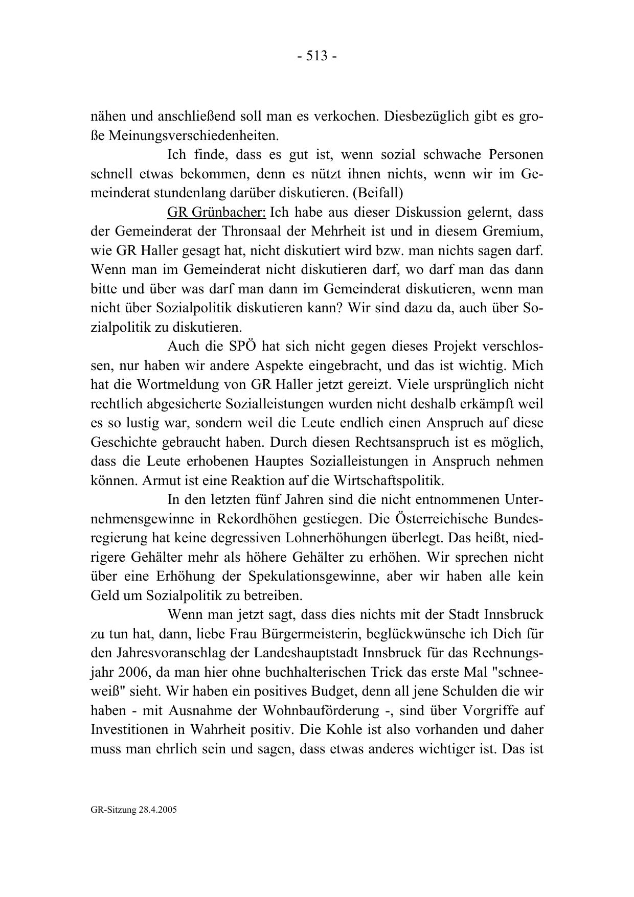 hat die Wortmeldung von GR Haller jetzt gereizt. Viele ursprünglich nicht