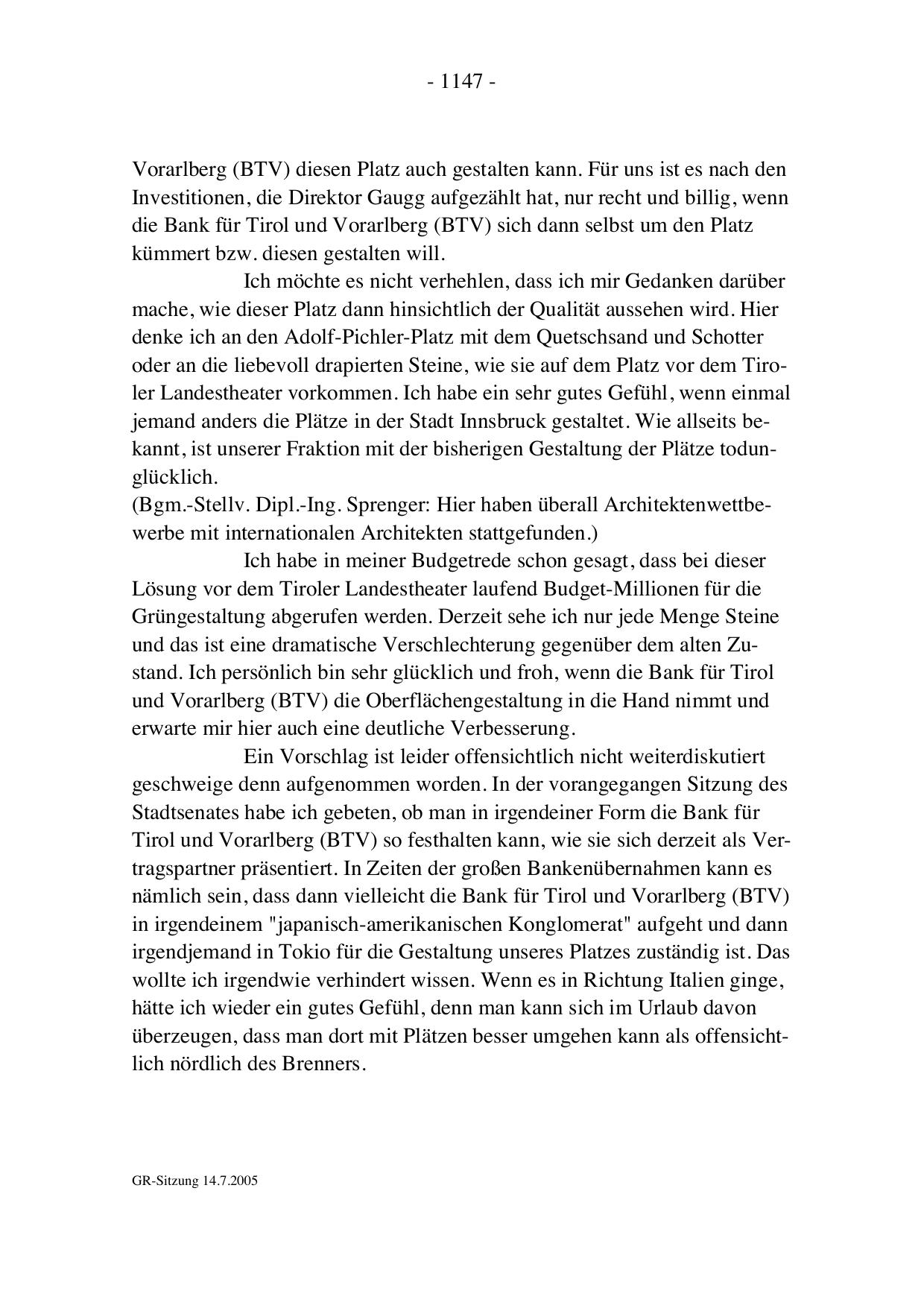 jemand anders die Plätze in der Stadt Innsbruck gestaltet. Wie allseits bekannt, ist unserer Fraktion mit der bisherigen Gestaltung der Plätze todunglücklich.