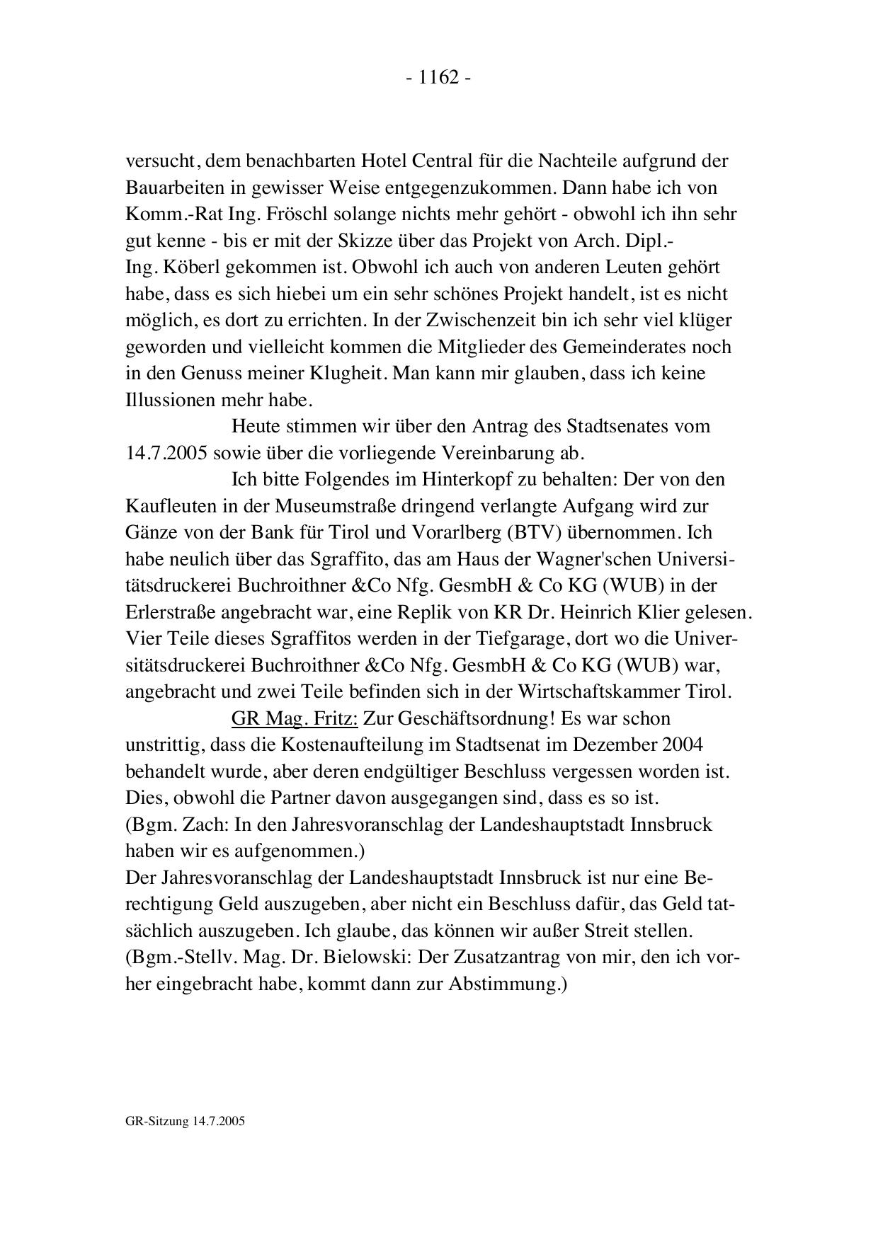 unstrittig, dass die Kostenaufteilung im Stadtsenat im Dezember 2004