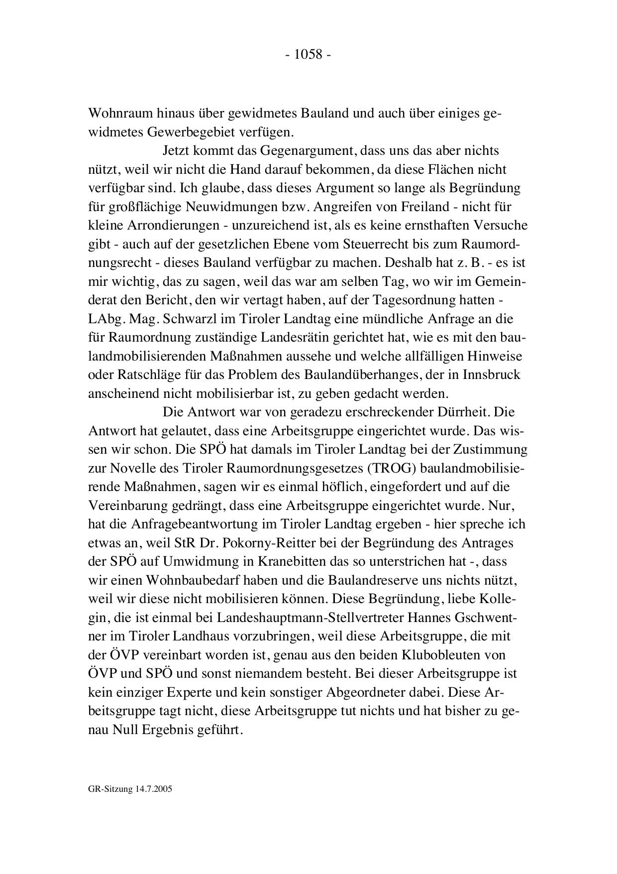 der SPÖ auf Umwidmung in Kranebitten das so unterstrichen hat -, dass