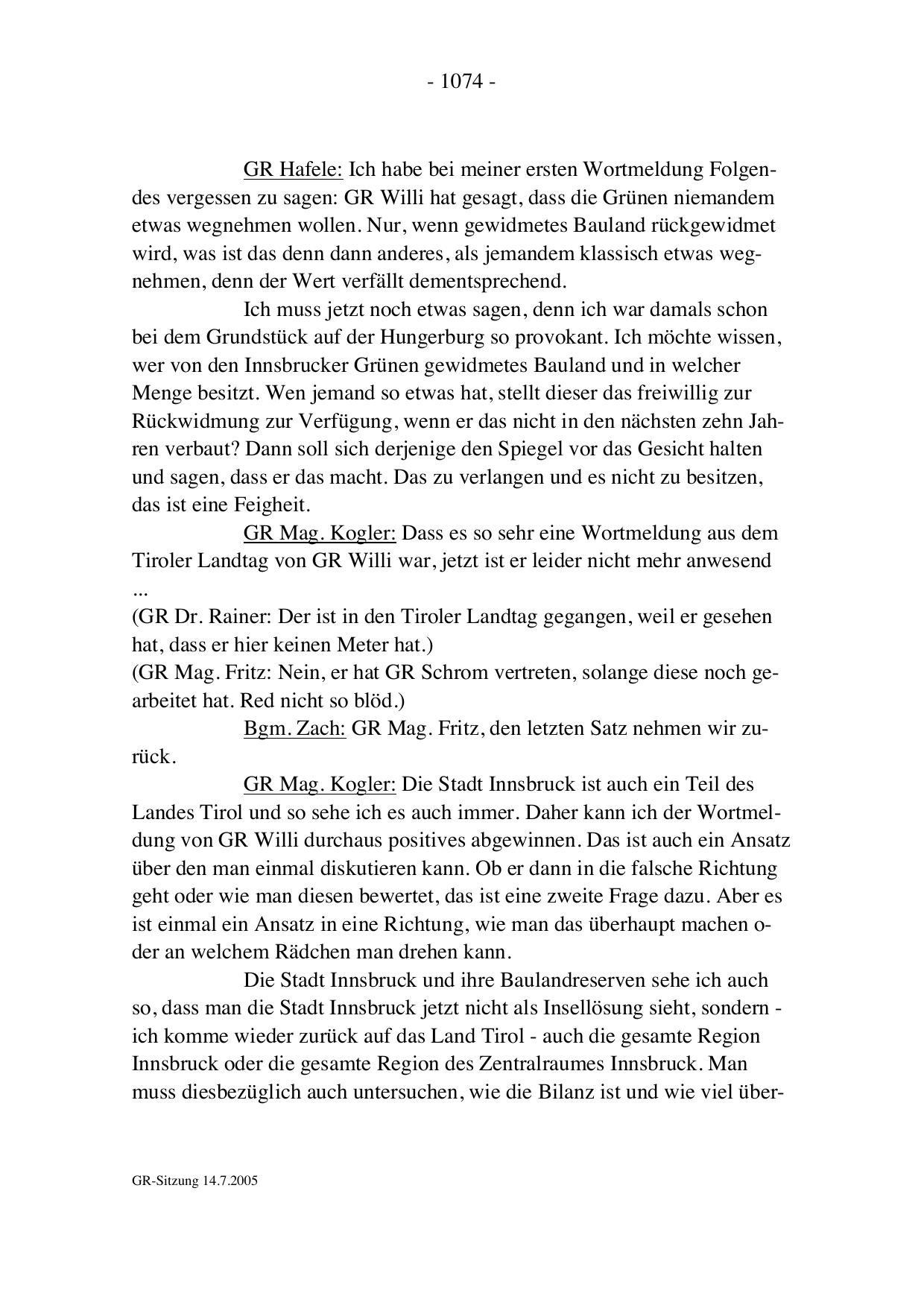 Landes Tirol und so sehe ich es auch immer. Daher kann ich der Wortmeldung von GR Willi durchaus positives abgewinnen. Das ist auch ein Ansatz