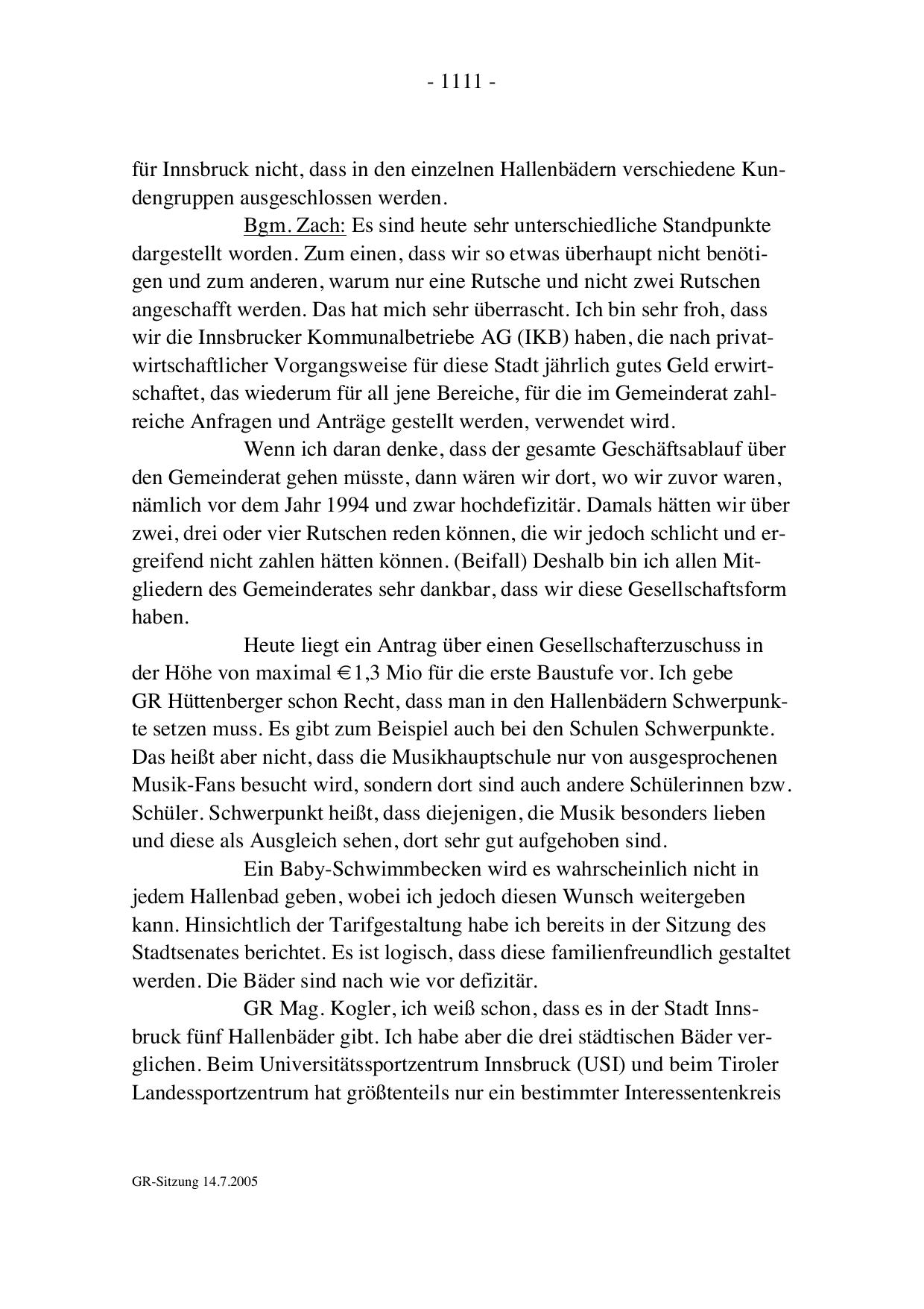 GR Mag. Kogler, ich weiß schon, dass es in der Stadt Innsbruck fünf Hallenbäder gibt. Ich habe aber die drei städtischen Bäder verglichen. Beim Universitätssportzentrum Innsbruck (USI) und beim Tiroler