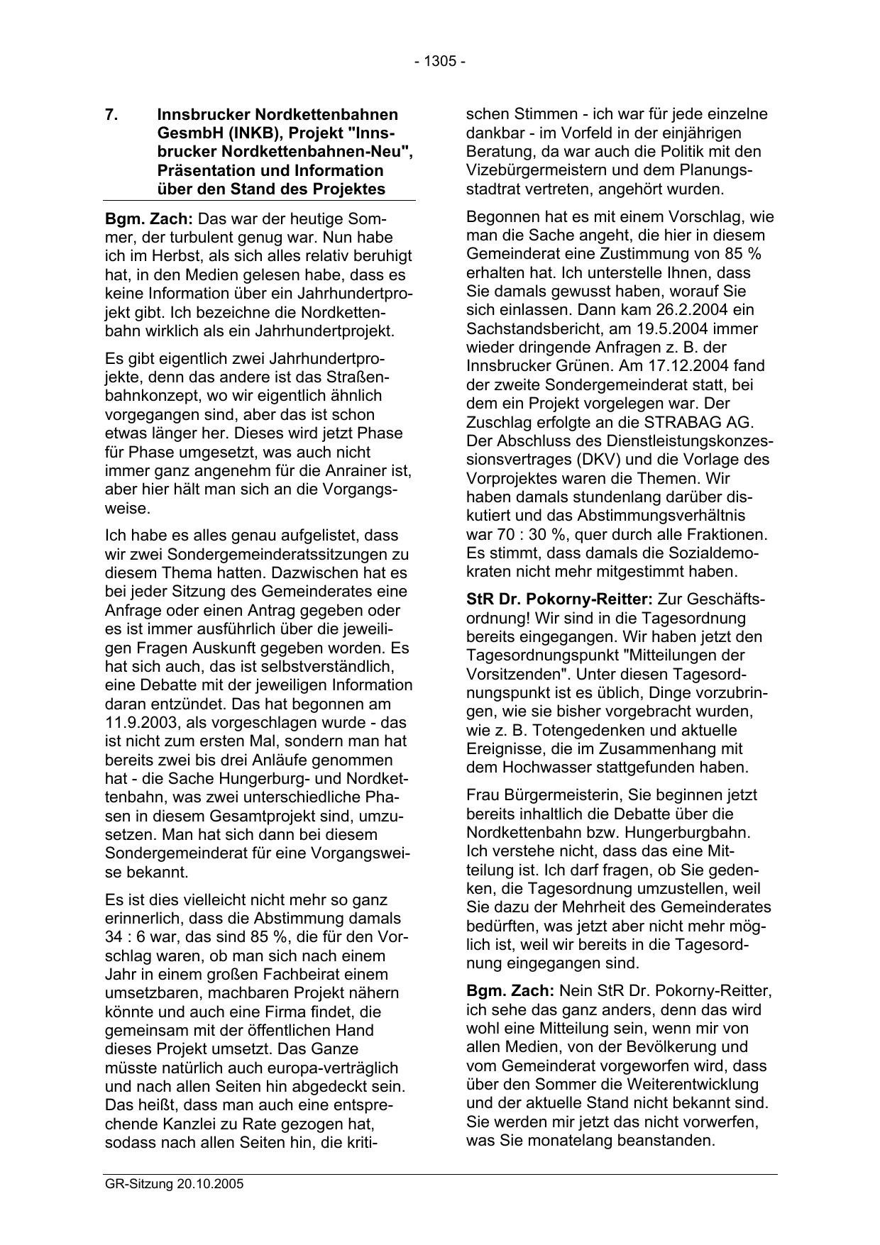Bgm. Zach: Nein StR Dr. Pokorny-Reitter,
