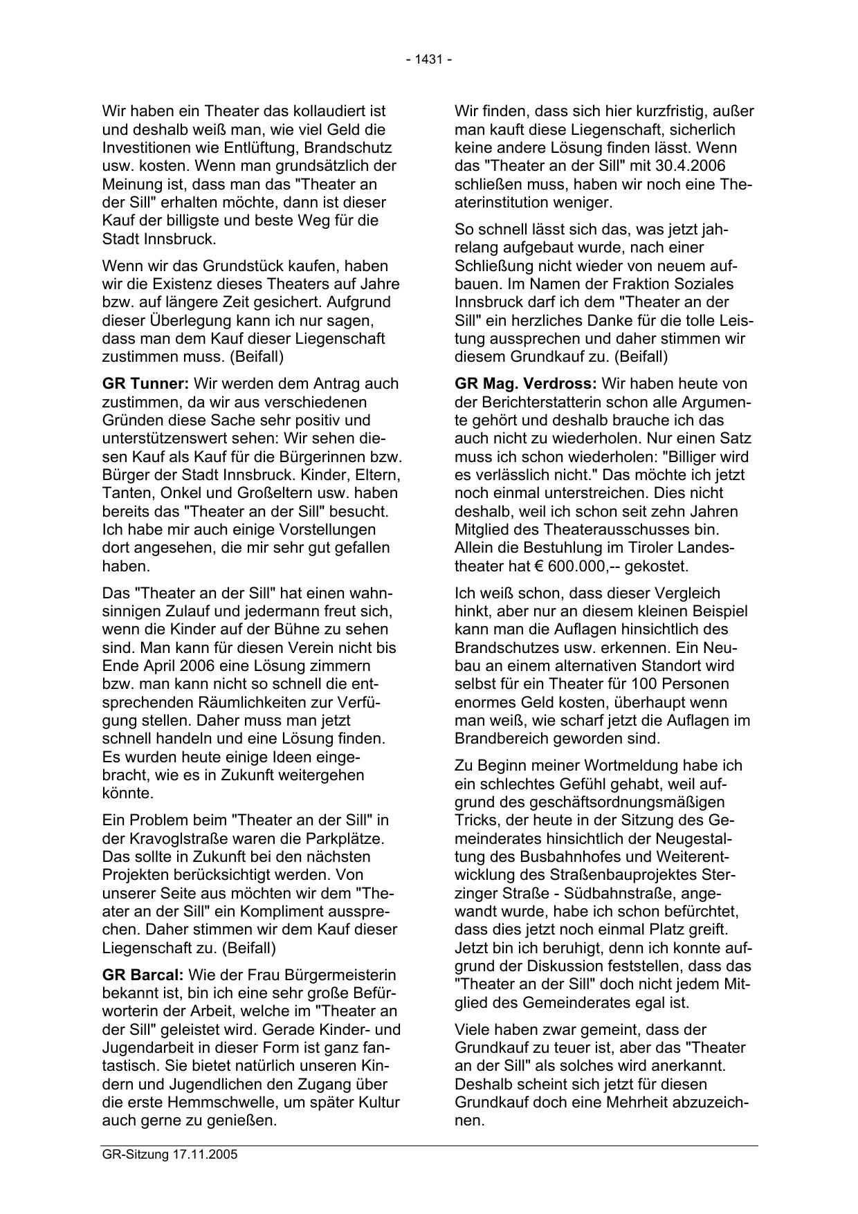 "Theater an der Sill" doch nicht jedem Mitglied des Gemeinderates egal ist.