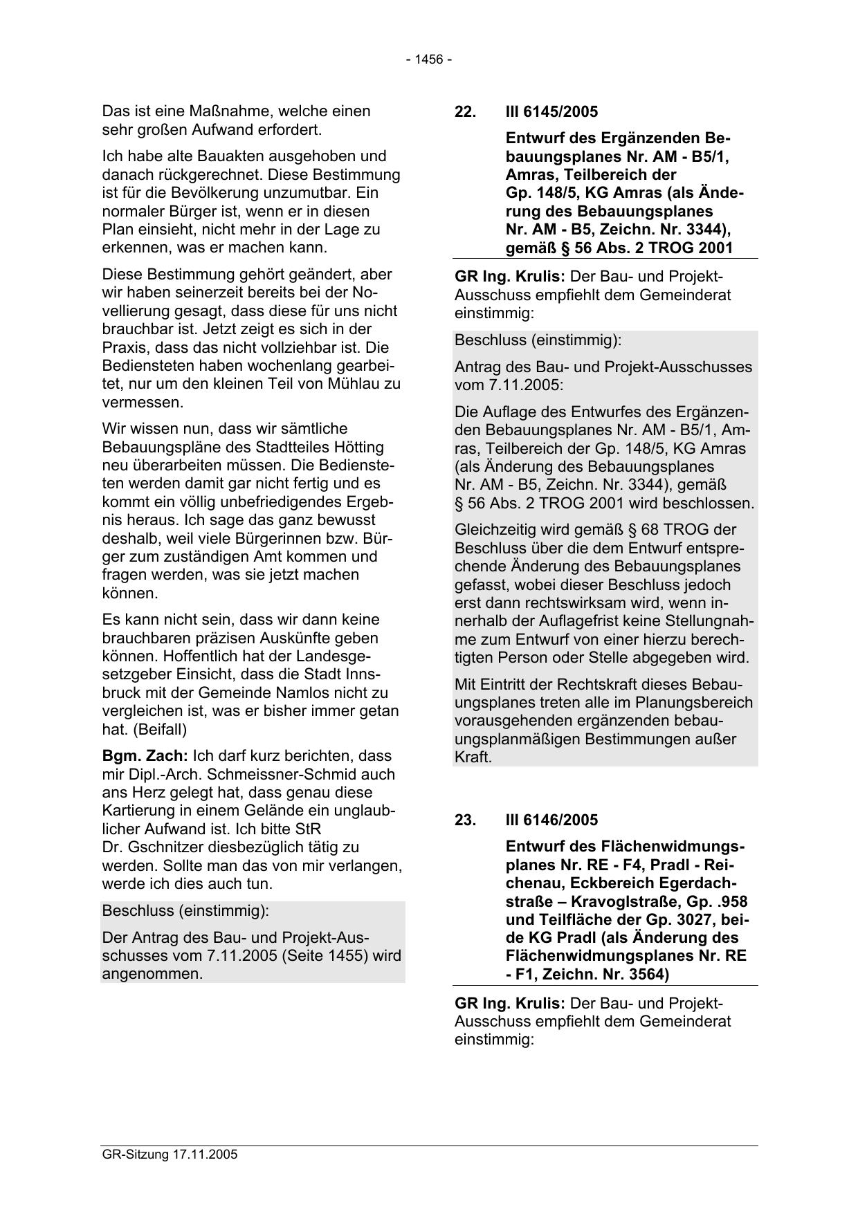 GR Ing. Krulis: Der Bau- und ProjektAusschuss empfiehlt dem Gemeinderat