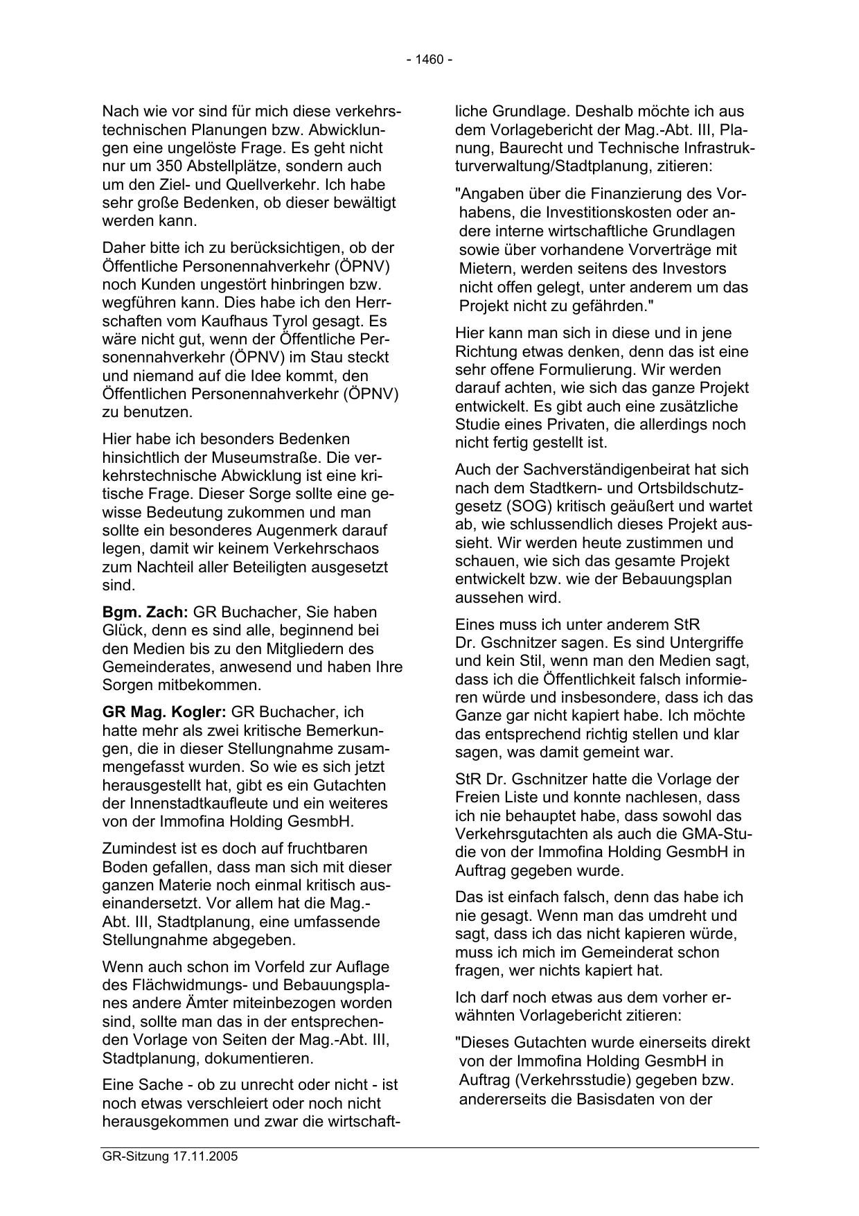 herausgekommen und zwar die wirtschaftGR-Sitzung 17.11.2005