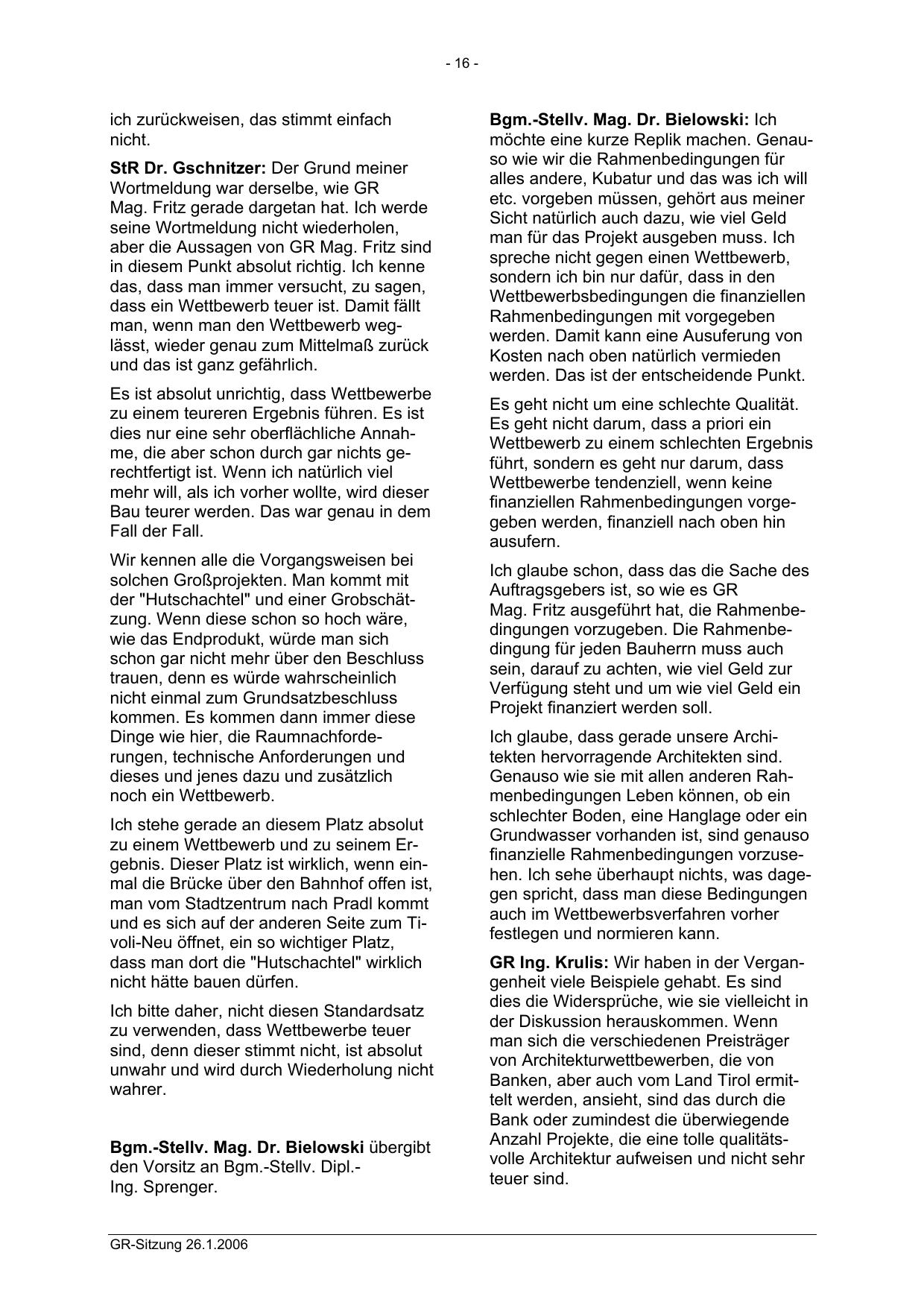 GR Ing. Krulis: Wir haben in der Vergangenheit viele Beispiele gehabt. Es sind