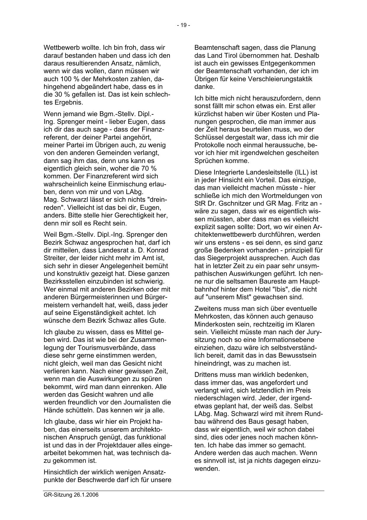 StR Dr. Gschnitzer und GR Mag. Fritz an wäre zu sagen, dass wir es eigentlich wissen müssten, aber dass man es vielleicht