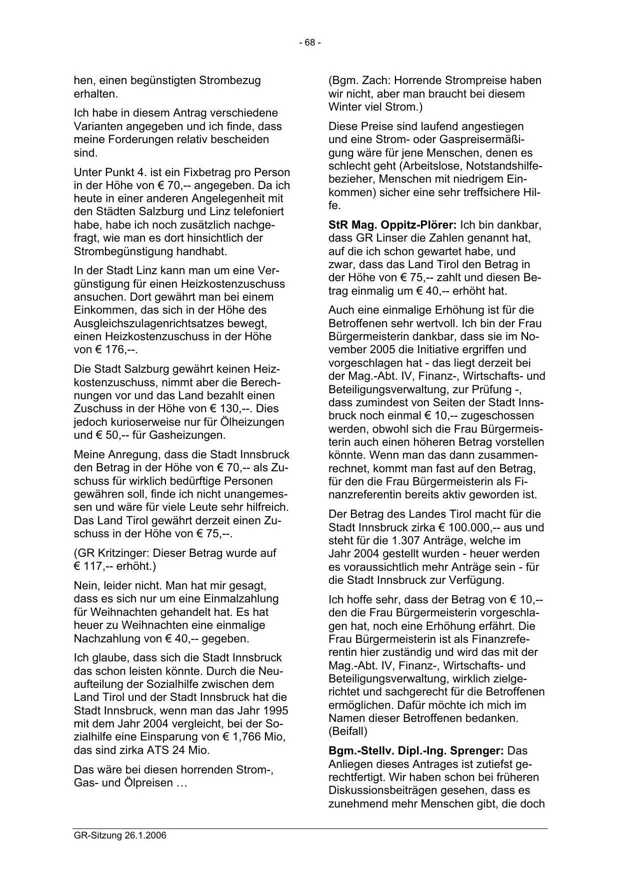 dass zumindest von Seiten der Stadt Innsbruck noch einmal € 10,-- zugeschossen